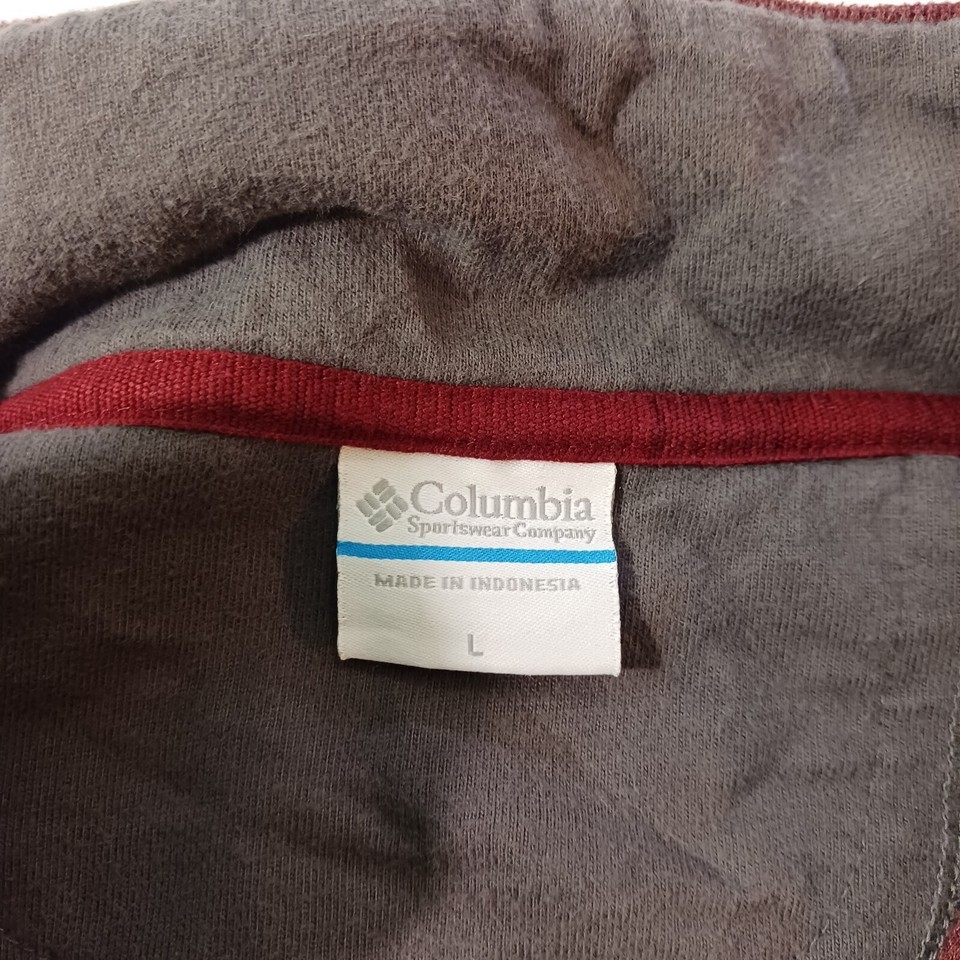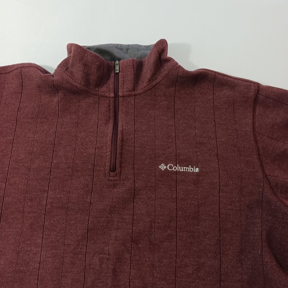 This Columbia men's sweatshirt features a 1/4 zip with a collared neckline and long sleeves. It is made of a cotton blend fabric with a tight-knit style and ribbed detailing. The sweatshirt is machine washable and comes in a size L.