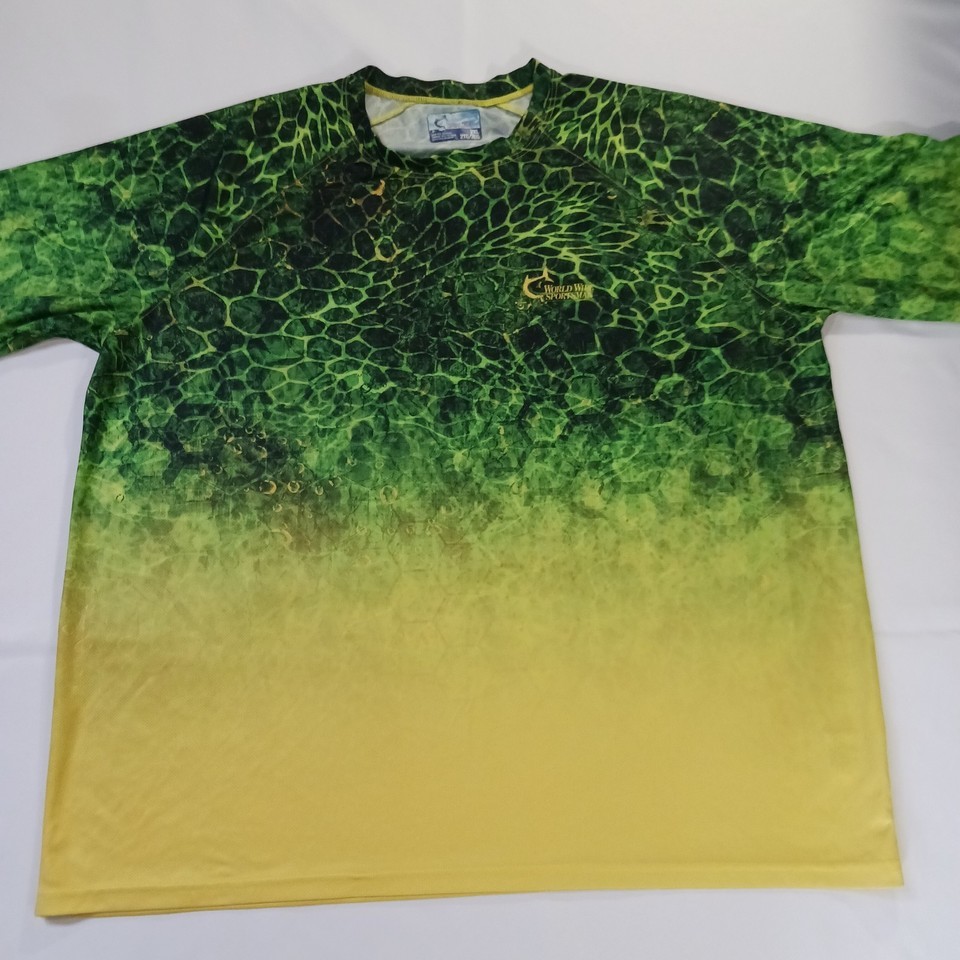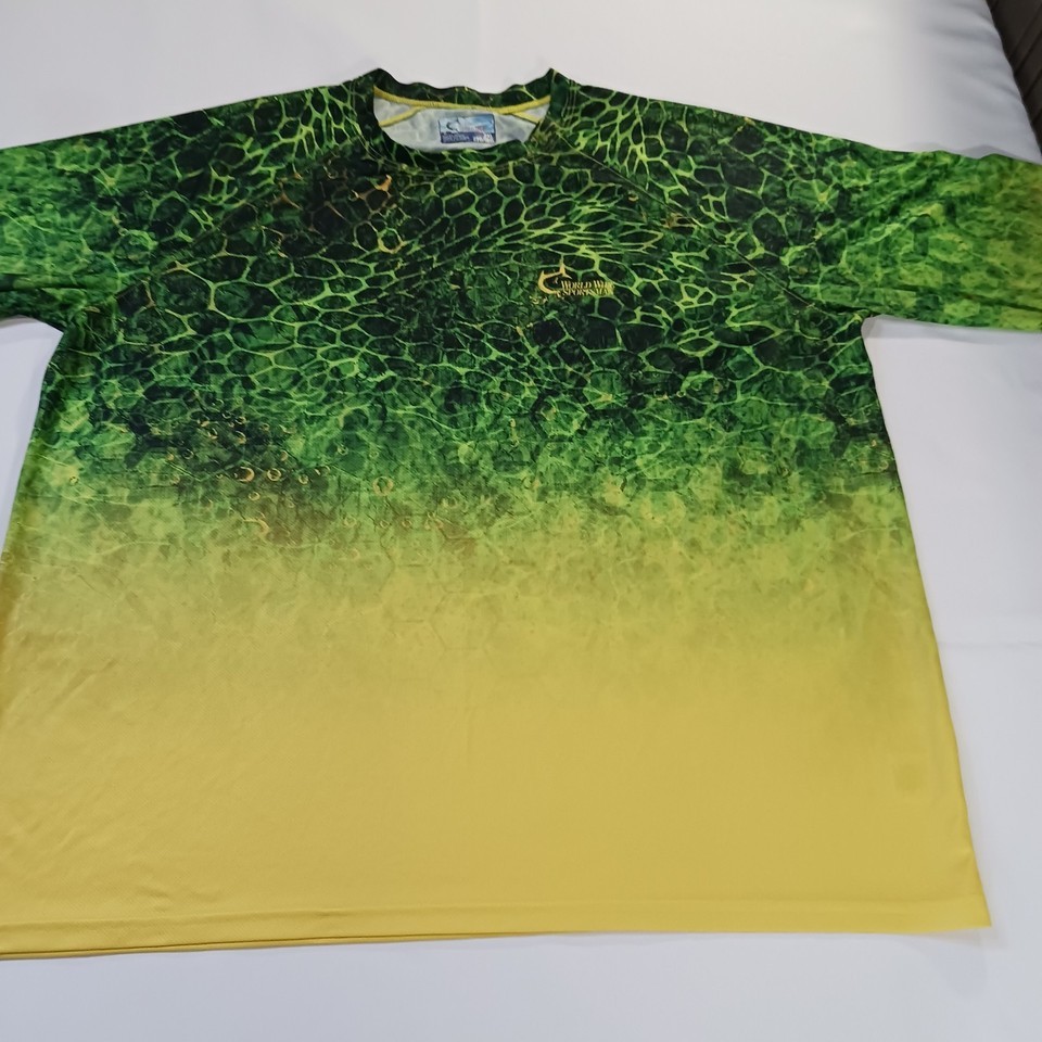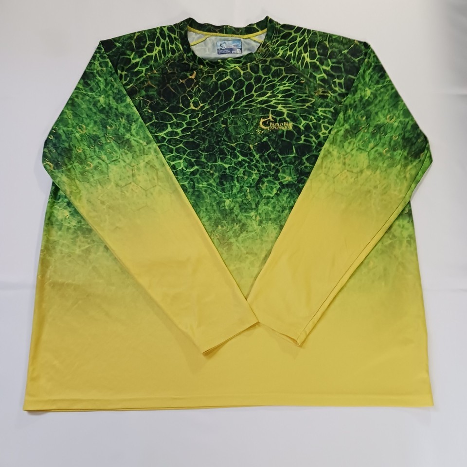 World Wide Sportsman RN#74747 Men's Yellow & Green Long Sleeve Shirt Size 2XL