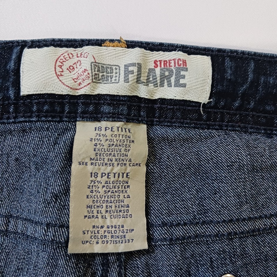 Faded Glory FGLO7421P Women's Stretch Flare Blue Cotton Blend Jeans Size 18P