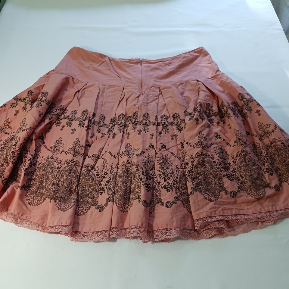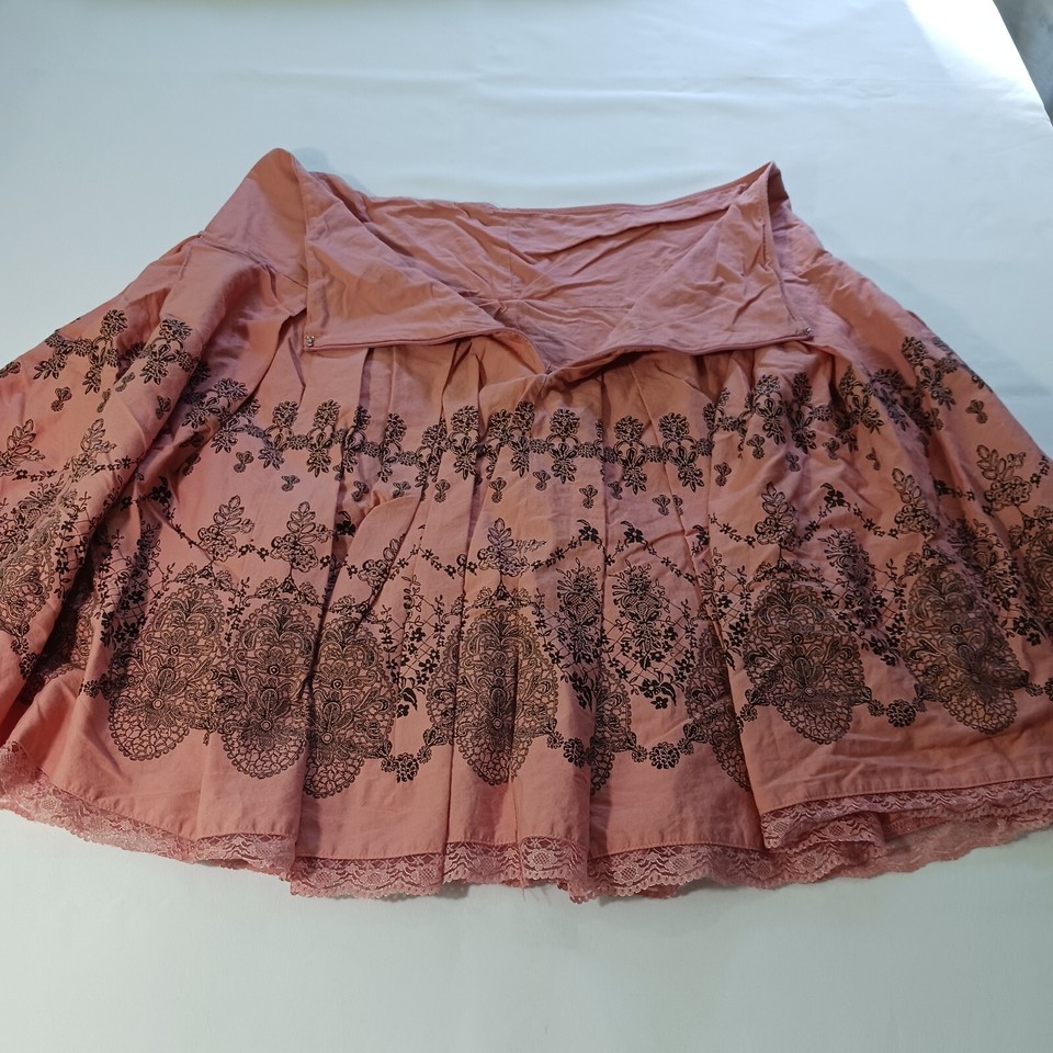 Apt. 9 Women Peach & Black Floral Cotton Back Zipper Pleated Skirt Size 18W