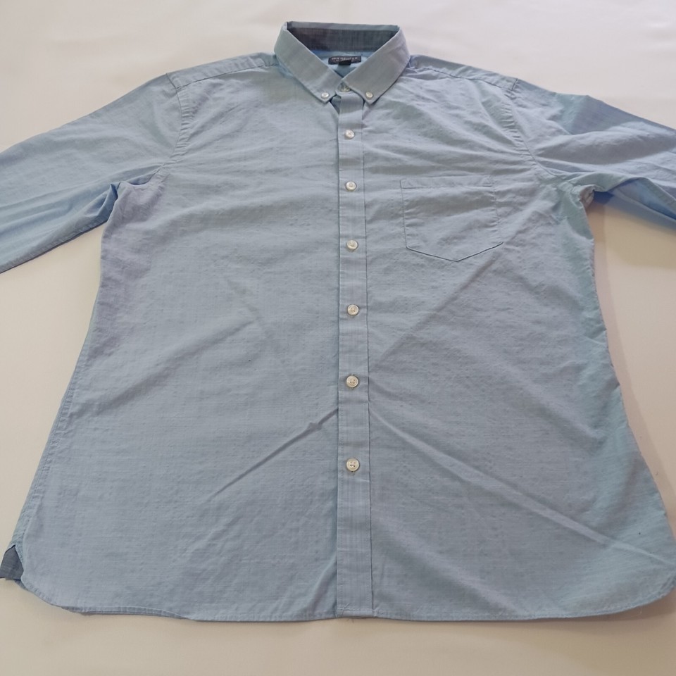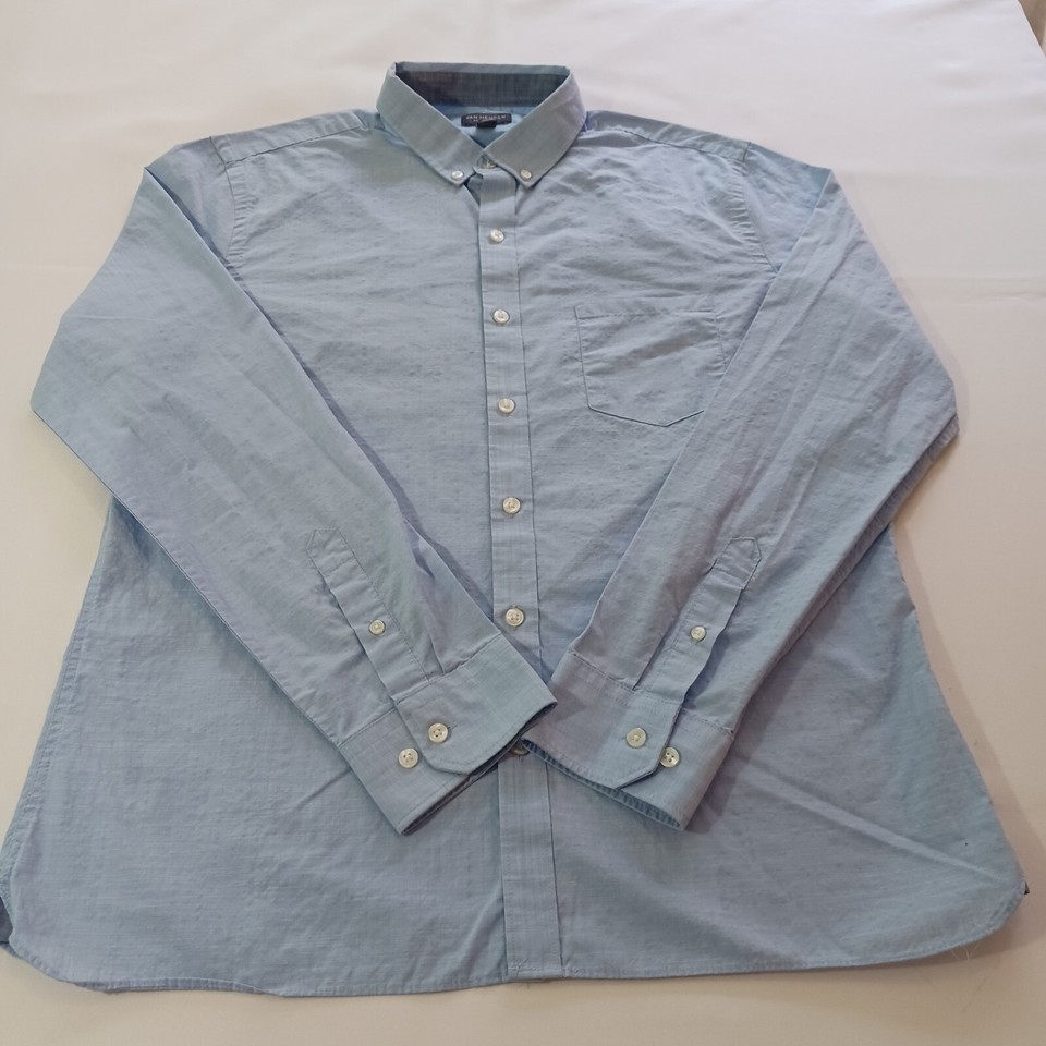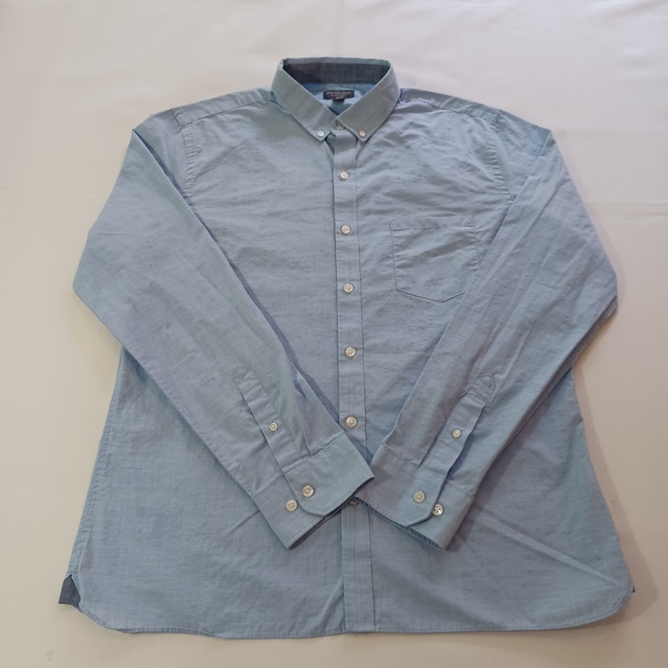 Van Heusen Never Tuck Men's Blue Cotton Blend Button Down Collar Shirt Size L