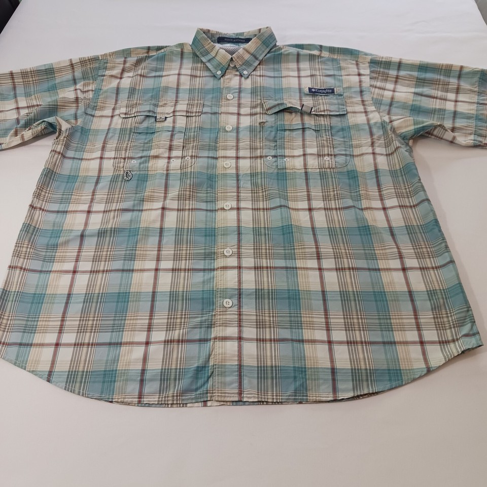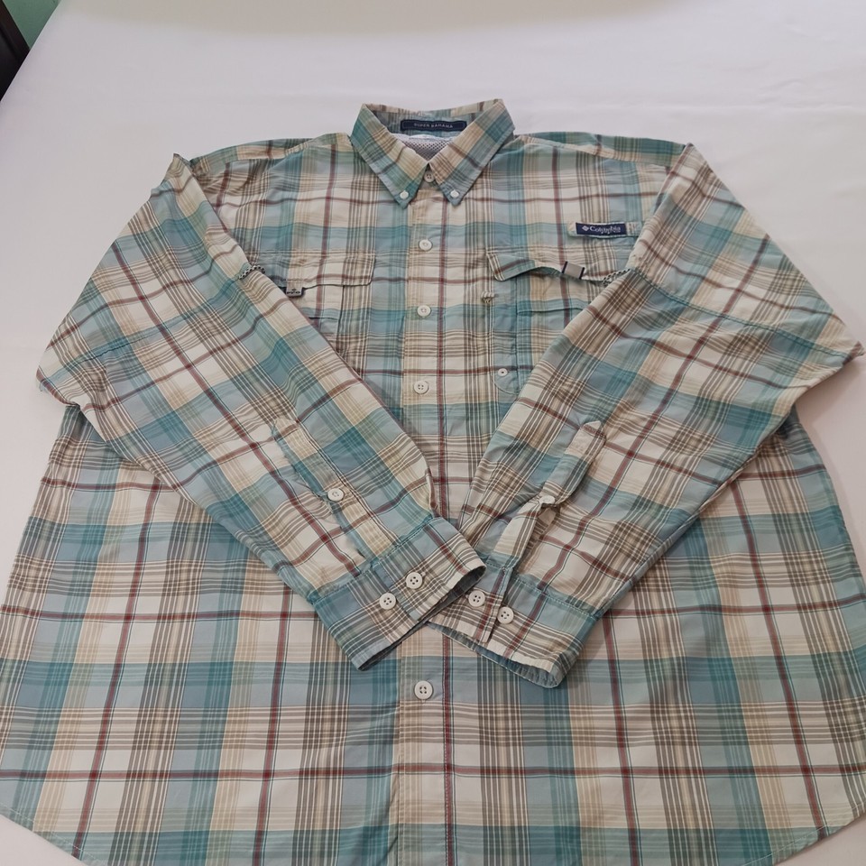 Columbia PFG Super Bahama Men's Large Plaid Long Sleeve Shirt FM7188 Omni-Shade