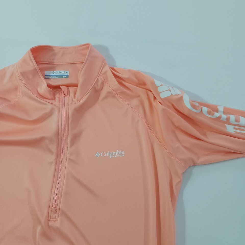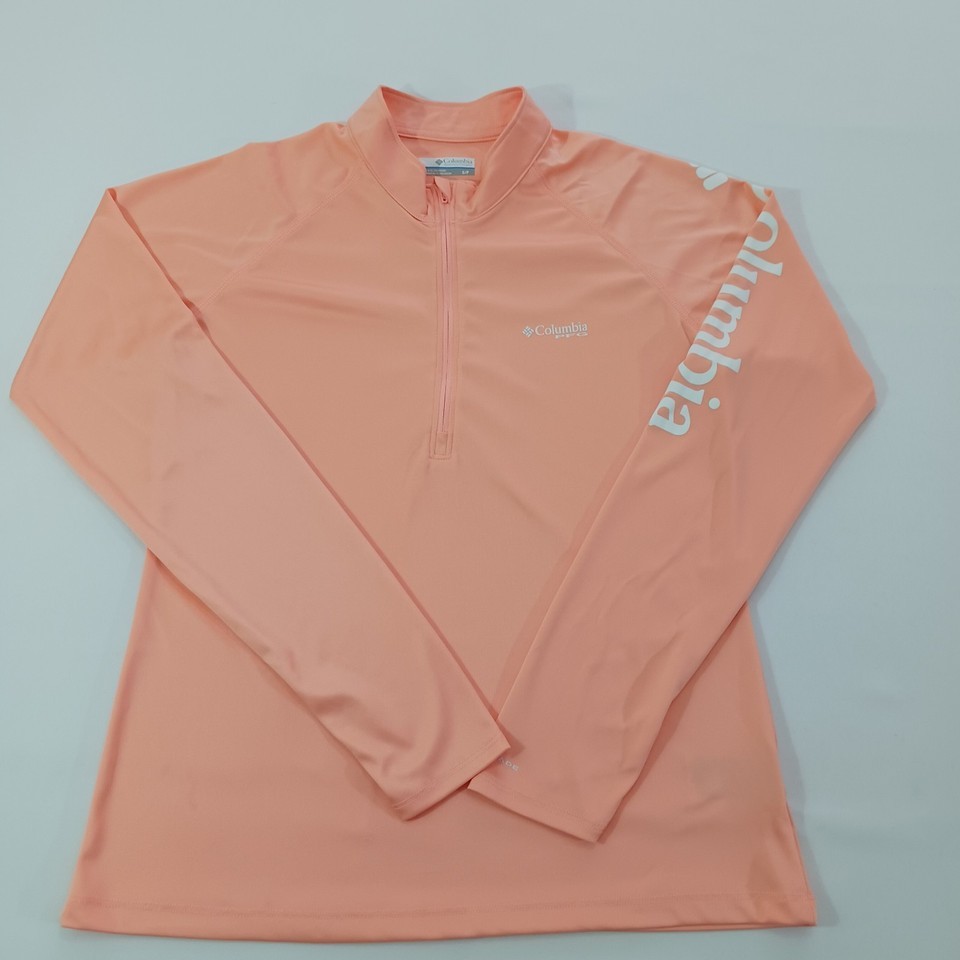 Columbia FL2404 Omni-Shade Men's 1/4 Zip Pullover Peach Long Sleeve Shirt Size S