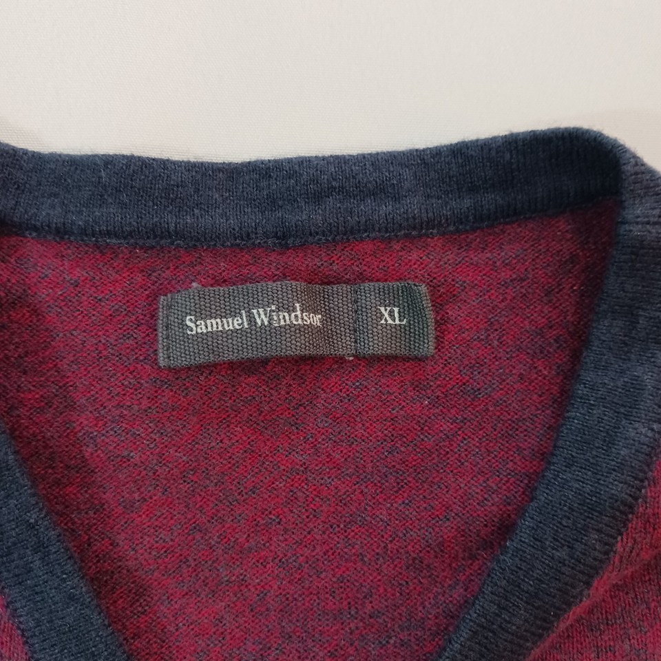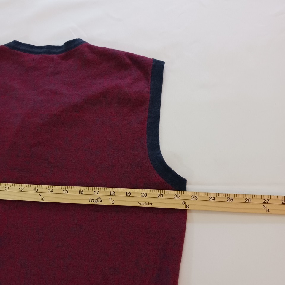 The burgundy and black color combination adds a touch of elegance to this regular fit sweater vest. It is a sleeveless vest perfect for layering over a shirt or under a jacket. The vest is made in Bangladesh and is available in XL size only. Enjoy the comfort and style of this knit vest without worrying about its condition.