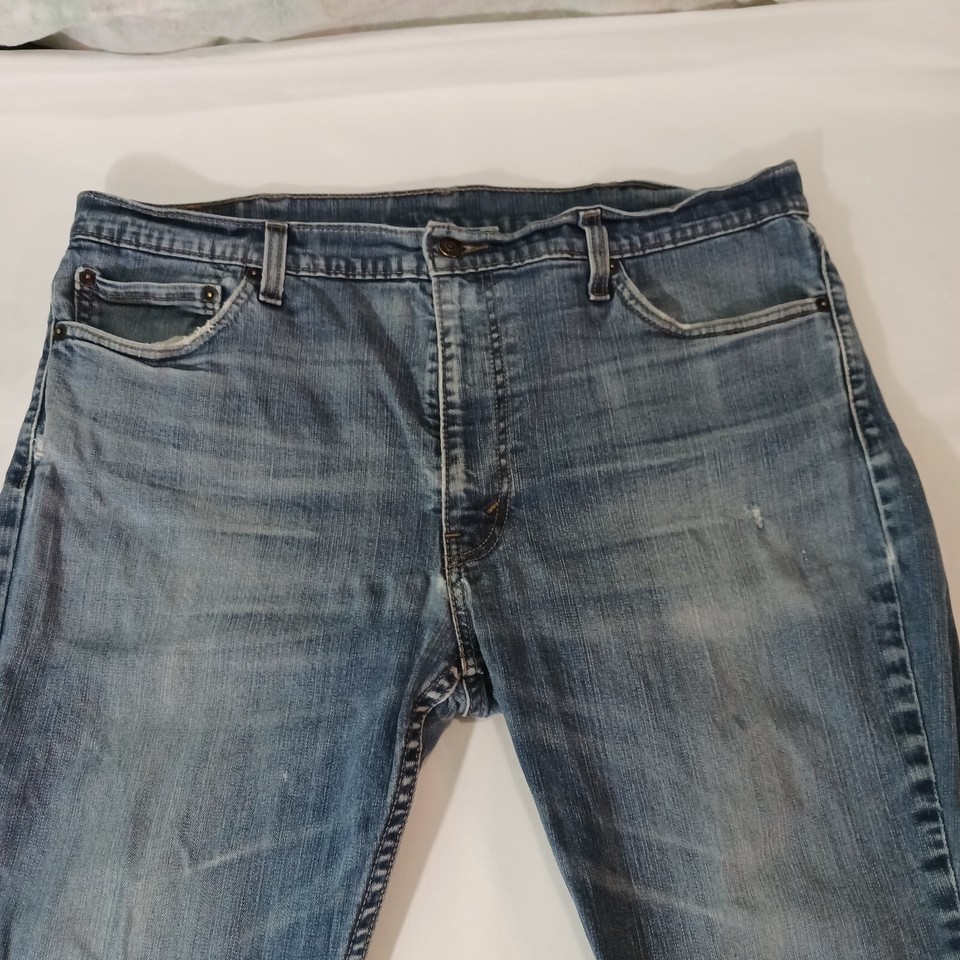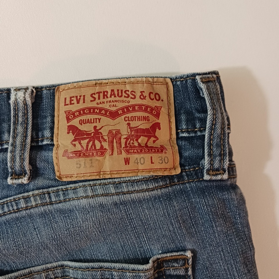 The Levi's 511 Men's Blue Denim Straight Distressed Jeans in size 40 feature a classic 5-pocket design with a low rise and a comfortable stretch fabric. The jeans have a zipper and button closure, with a light wash denim finish and a logo accent. Designed for a regular fit, these versatile jeans are suitable for all seasons and are perfect for a casual, city-inspired look with a touch of 90s style. Crafted from cotton material, these Levi's jeans are a timeless addition to any wardrobe.