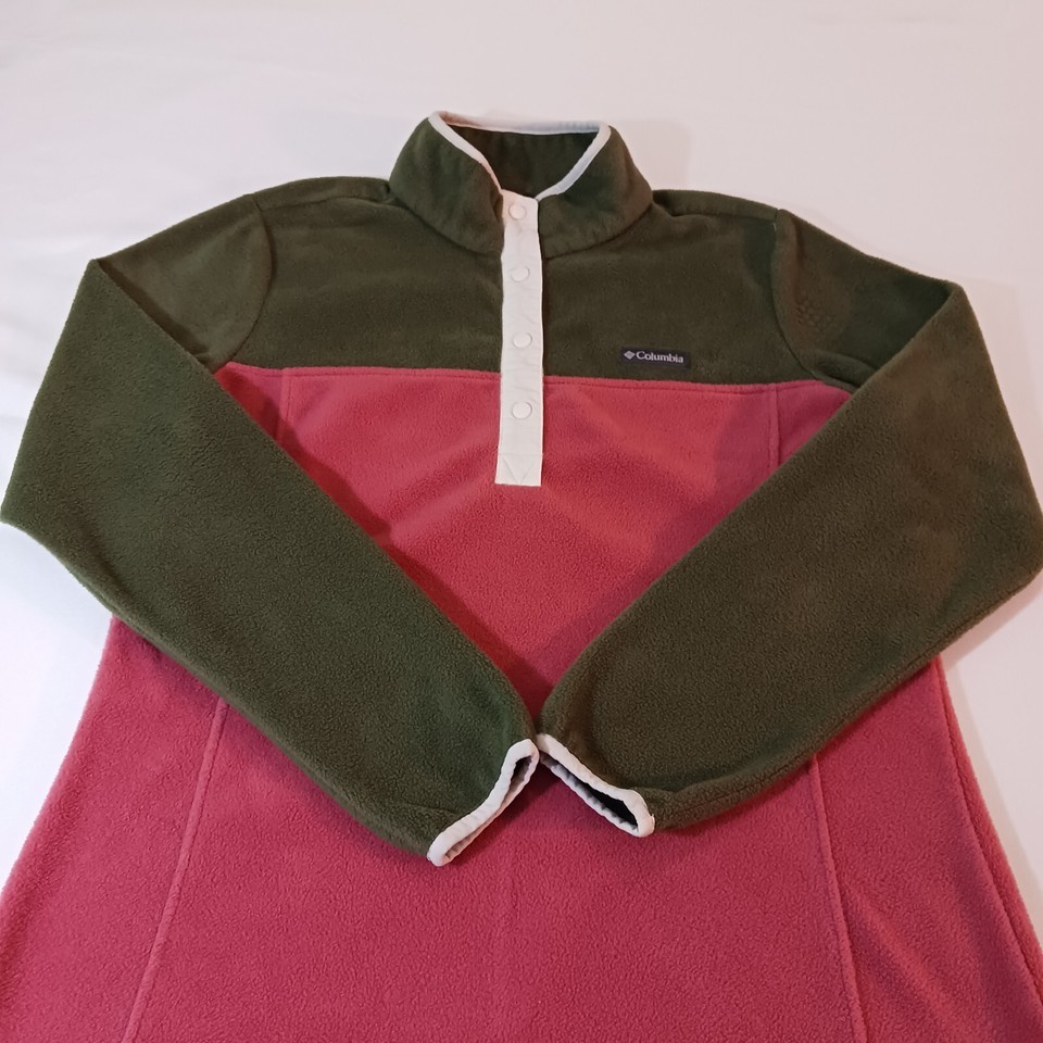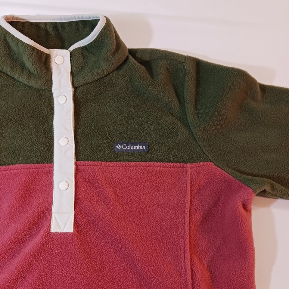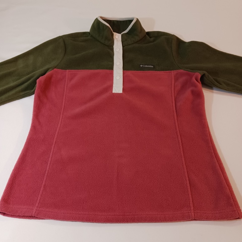 Columbia AL1302 Men's Peach & Green Pullover Fleece Sweater 1/4 Snap Button Sz L
