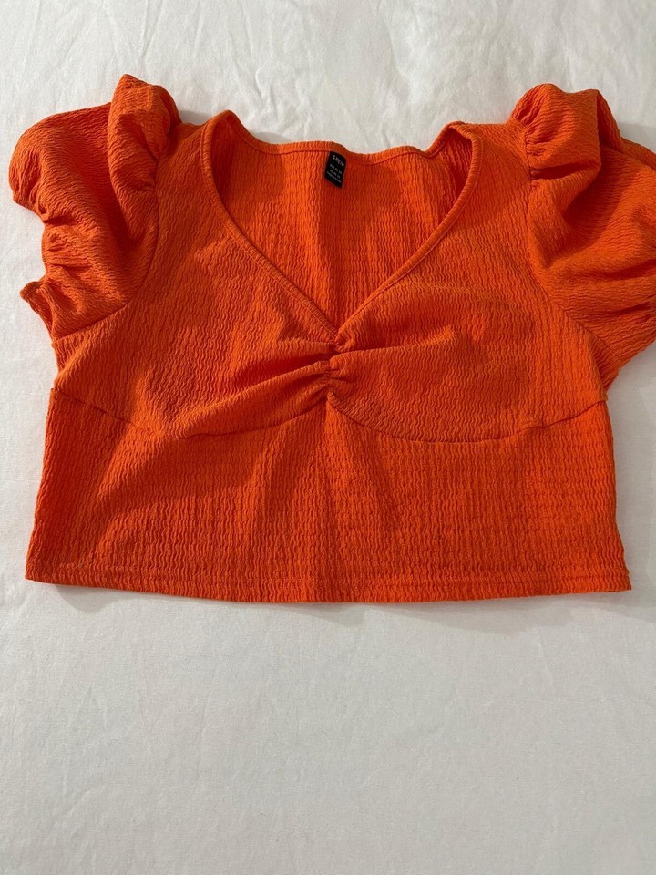 Shein Women's Orange Crop Top V-Neck Short Sleeve Size XL