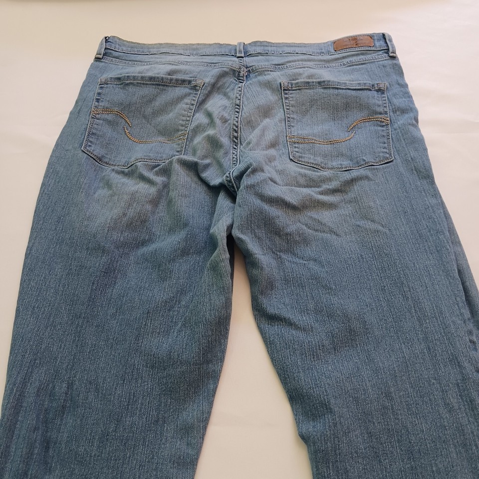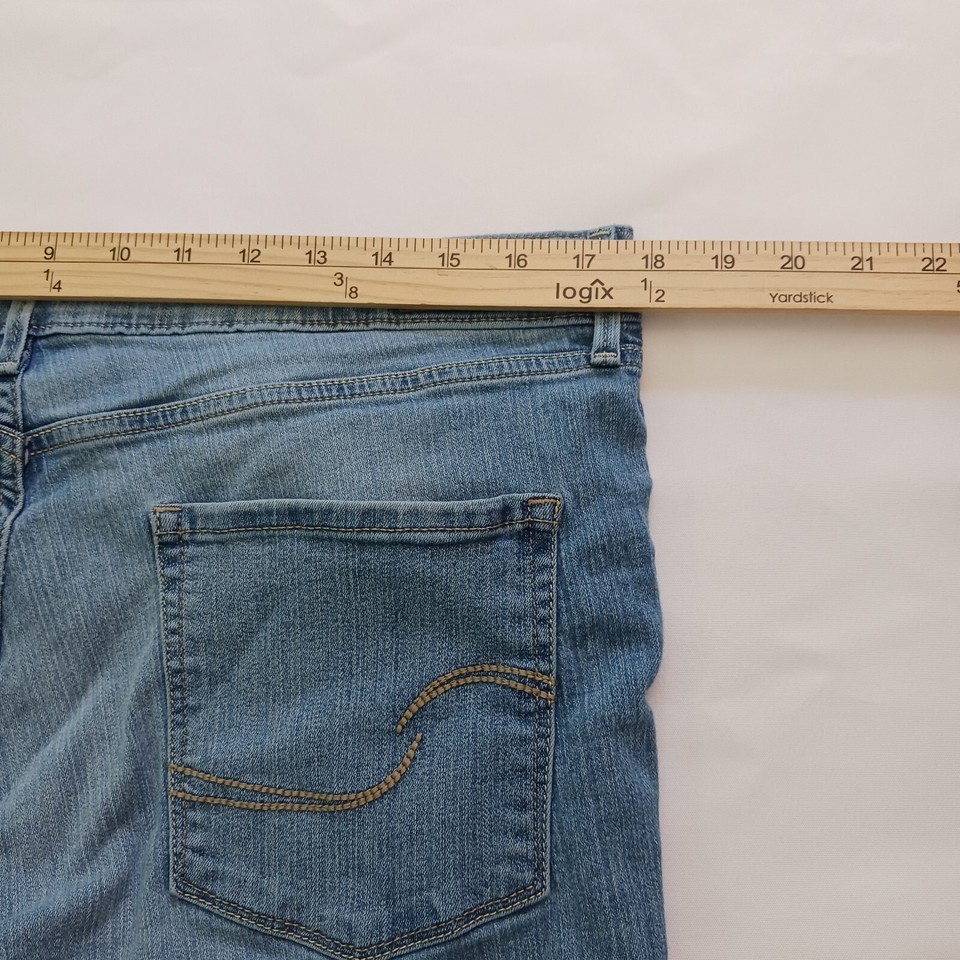 These women's jeans have a mid-rise fit and a modern cut, with a size of 18M and a waist size of 35 inches. The jeans have a 29.5-inch inseam and are machine washable for easy care. Perfect for any casual occasion, these jeans are a must-have addition to your wardrobe.