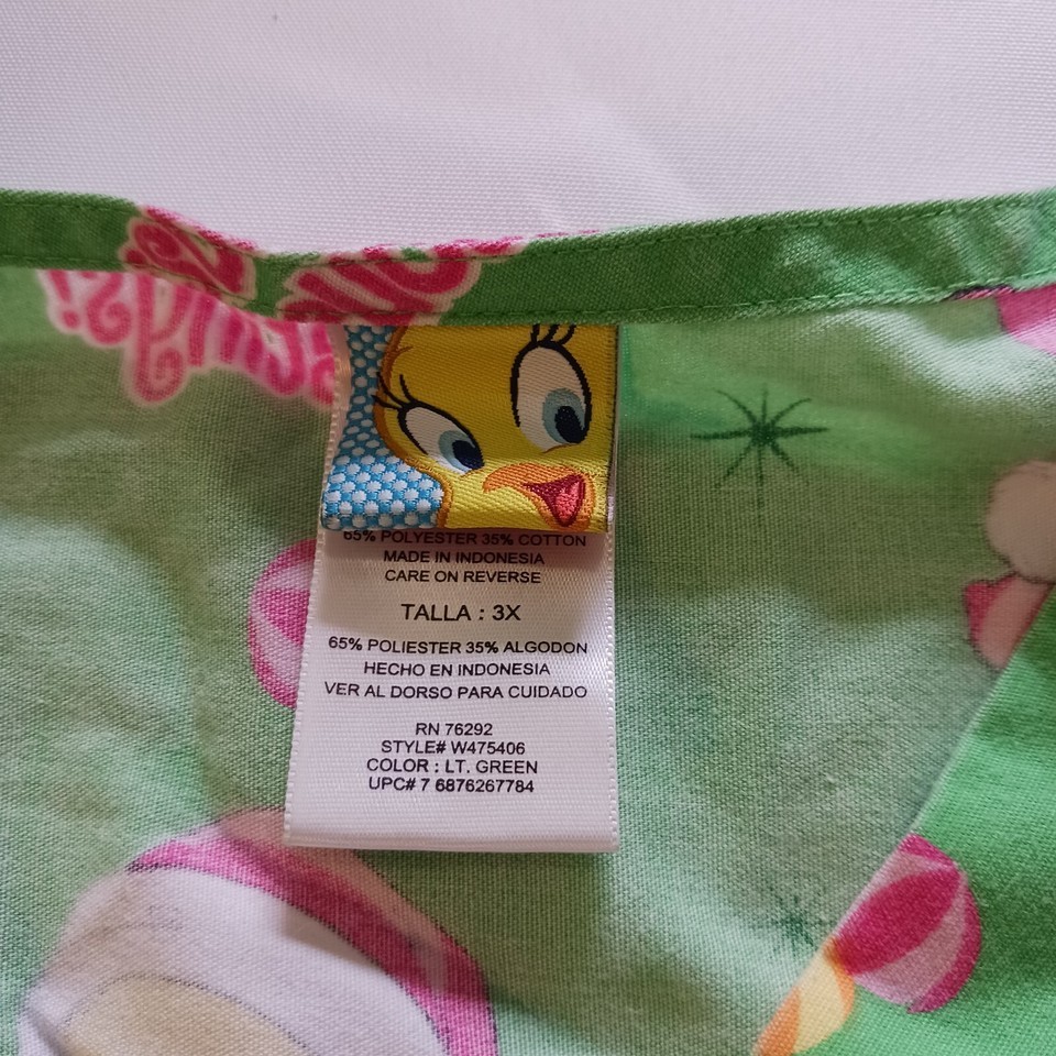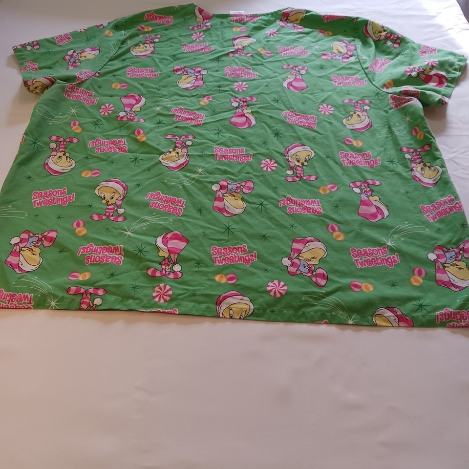 Warner Bros V-Neck Women’s Scrub Top Christmas Tweety Bird Season Tweetings 3XL