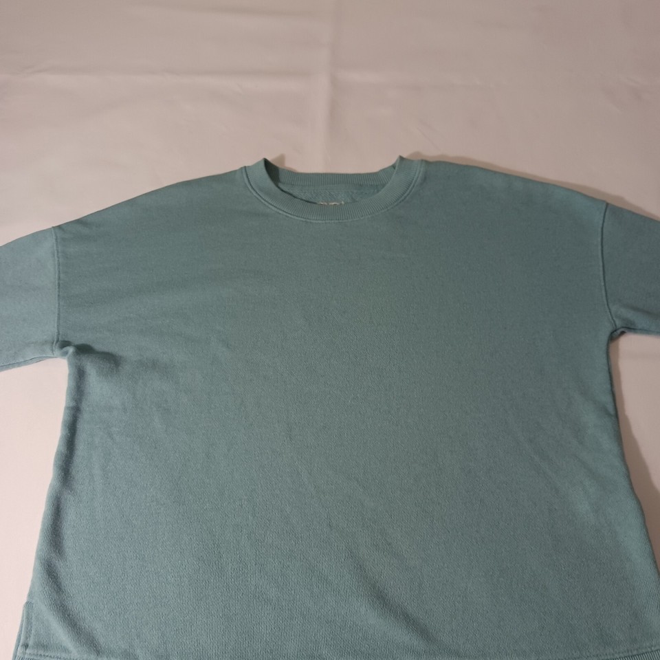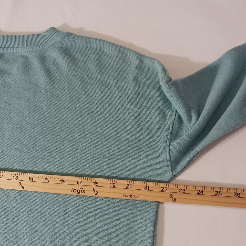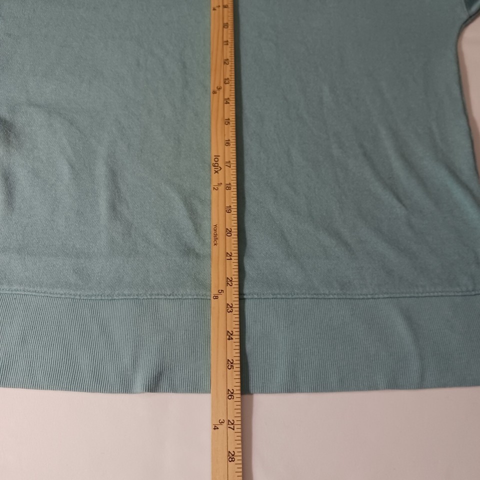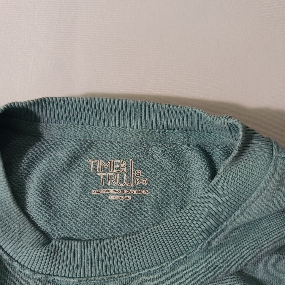 This Time and Tru women's t-shirt is a modern addition to your wardrobe. The shirt features a solid green color, long sleeves, and a pullover closure. It is made of a comfortable cotton-polyester blend material that is machine washable. The shirt has a button accent and stretch features, making it a perfect fit for any season. It is available in size S (4-6) and is suitable for casual occasions.
