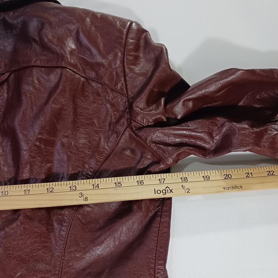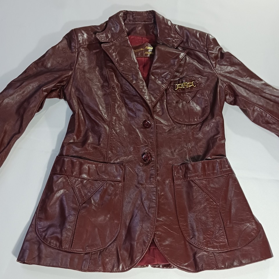 This vintage Etienne Aigner women's jacket is a stylish and classic piece made from 100% genuine leather in a deep wine red color. With a 2-button closure and a basic jacket style, this size 12 jacket is designed for a regular fit for women. The timeless design and high-quality material make this jacket a versatile and chic addition to any wardrobe. Perfect for layering or wearing on its own, this jacket is sure to become a favorite go-to piece for any occasion.