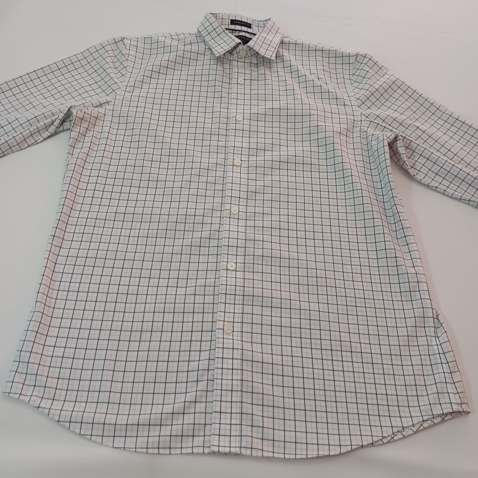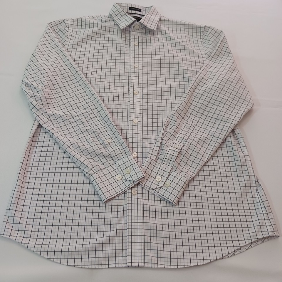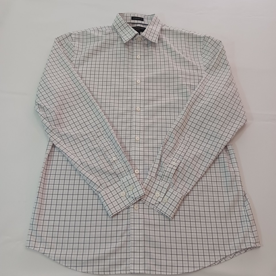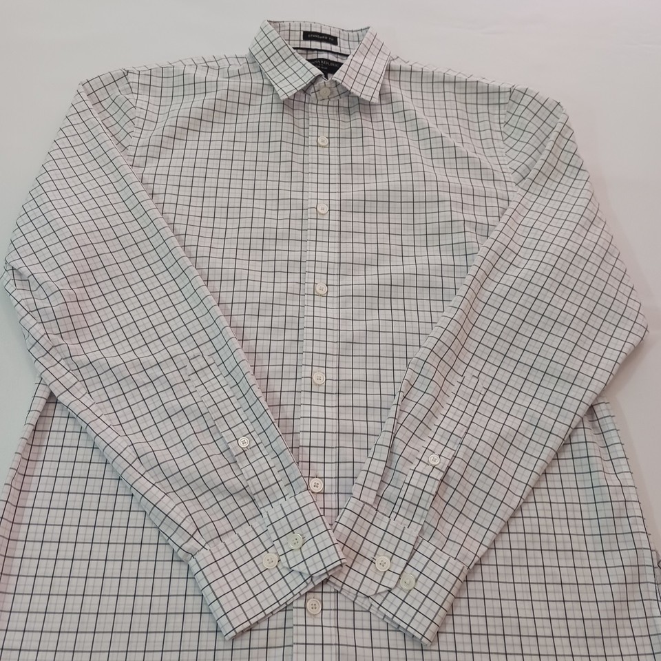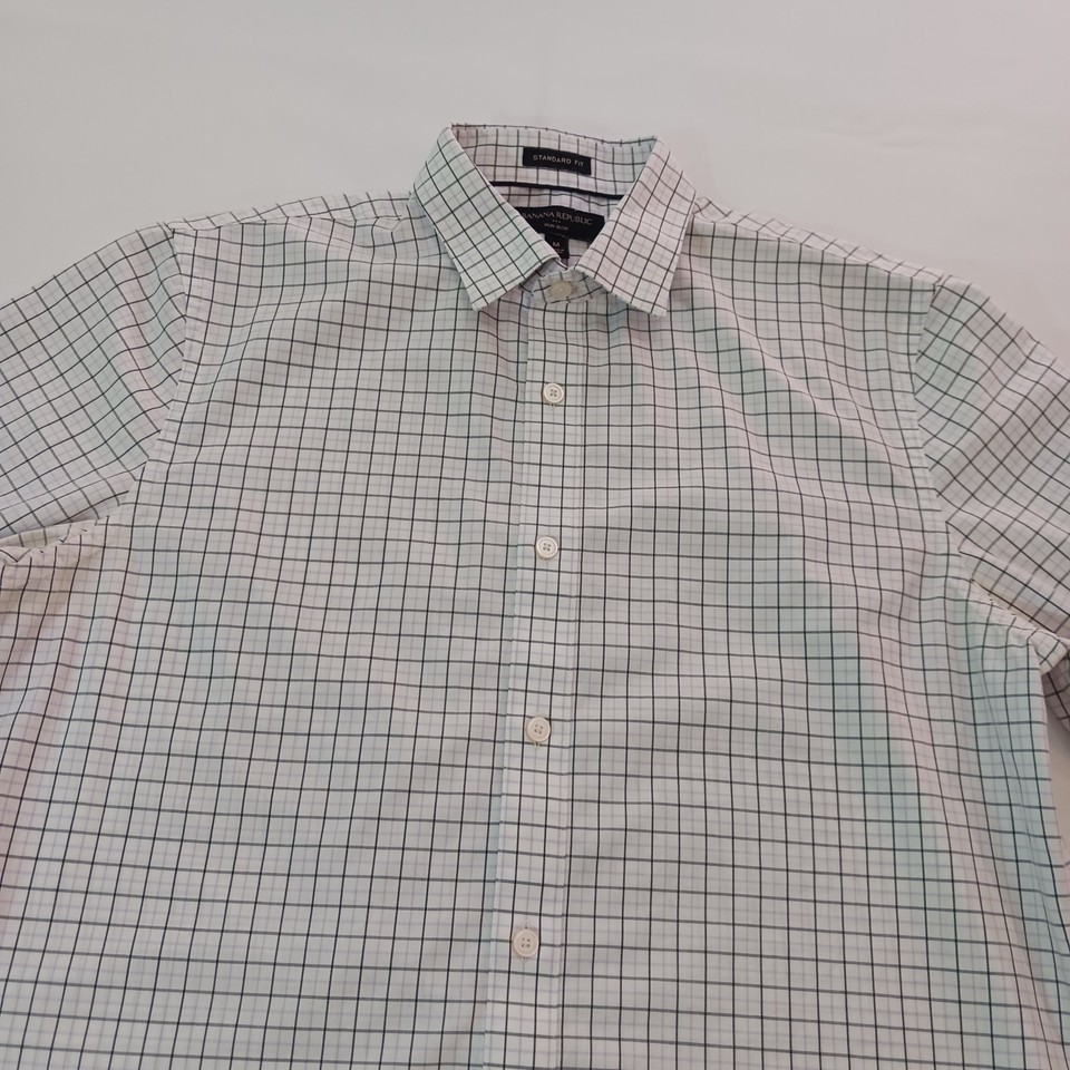 Banana Republic Standard Fit Mens White & Gray Button Up Check Shirt Size Medium