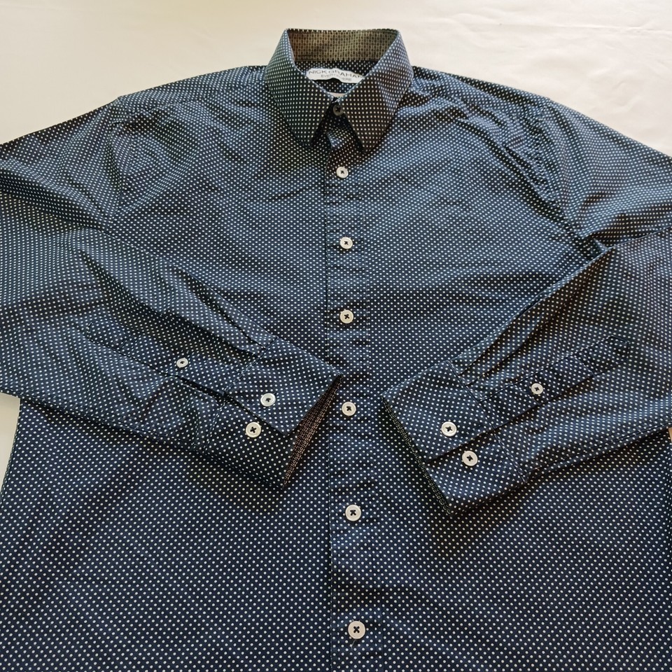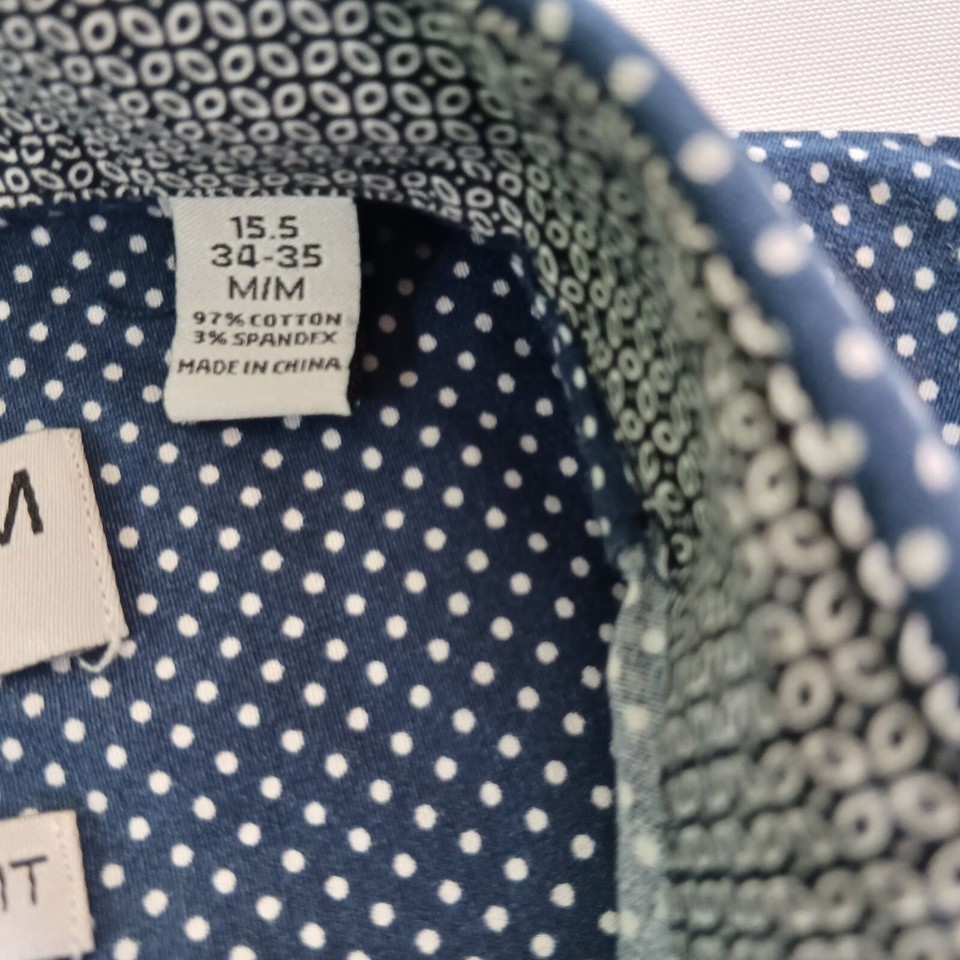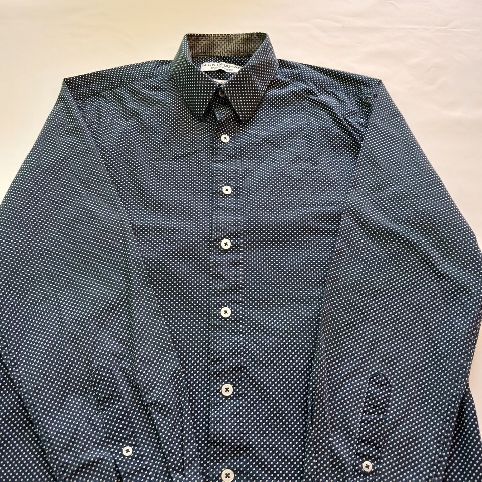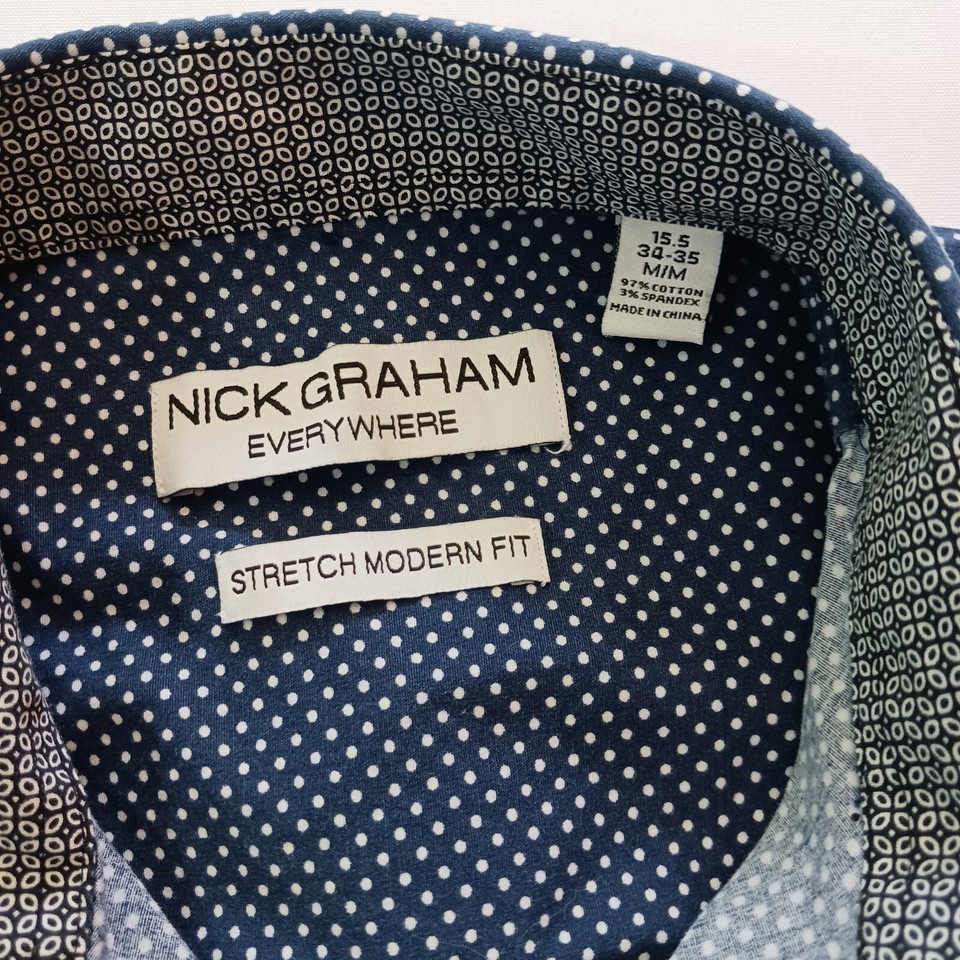 Nick Graham Stretch Modern Fit Men's Blue & White Dot Button Up Shirt Sz M 34-35