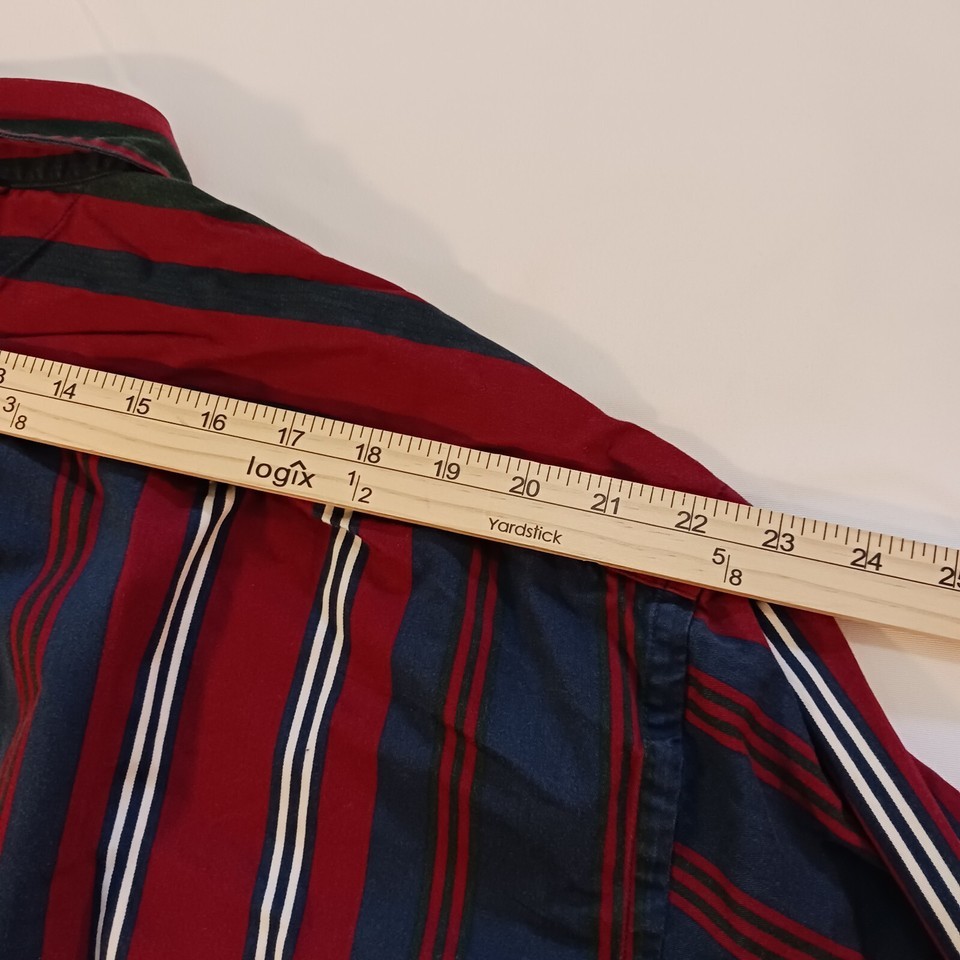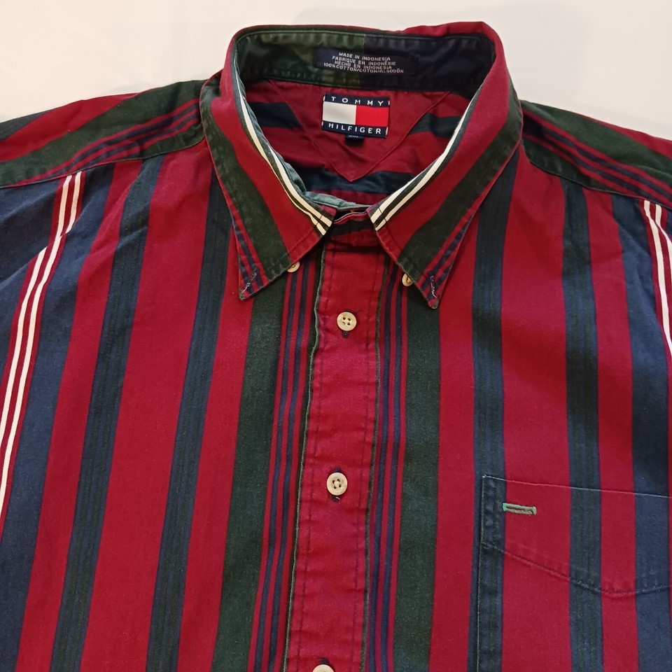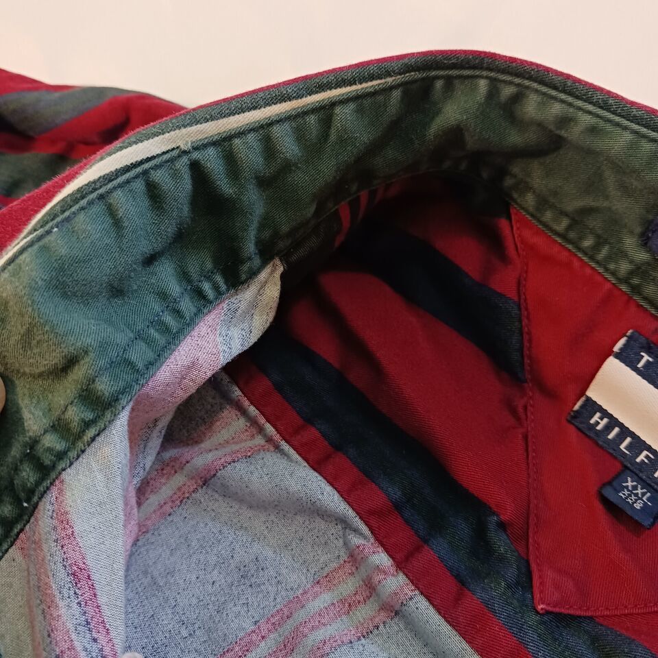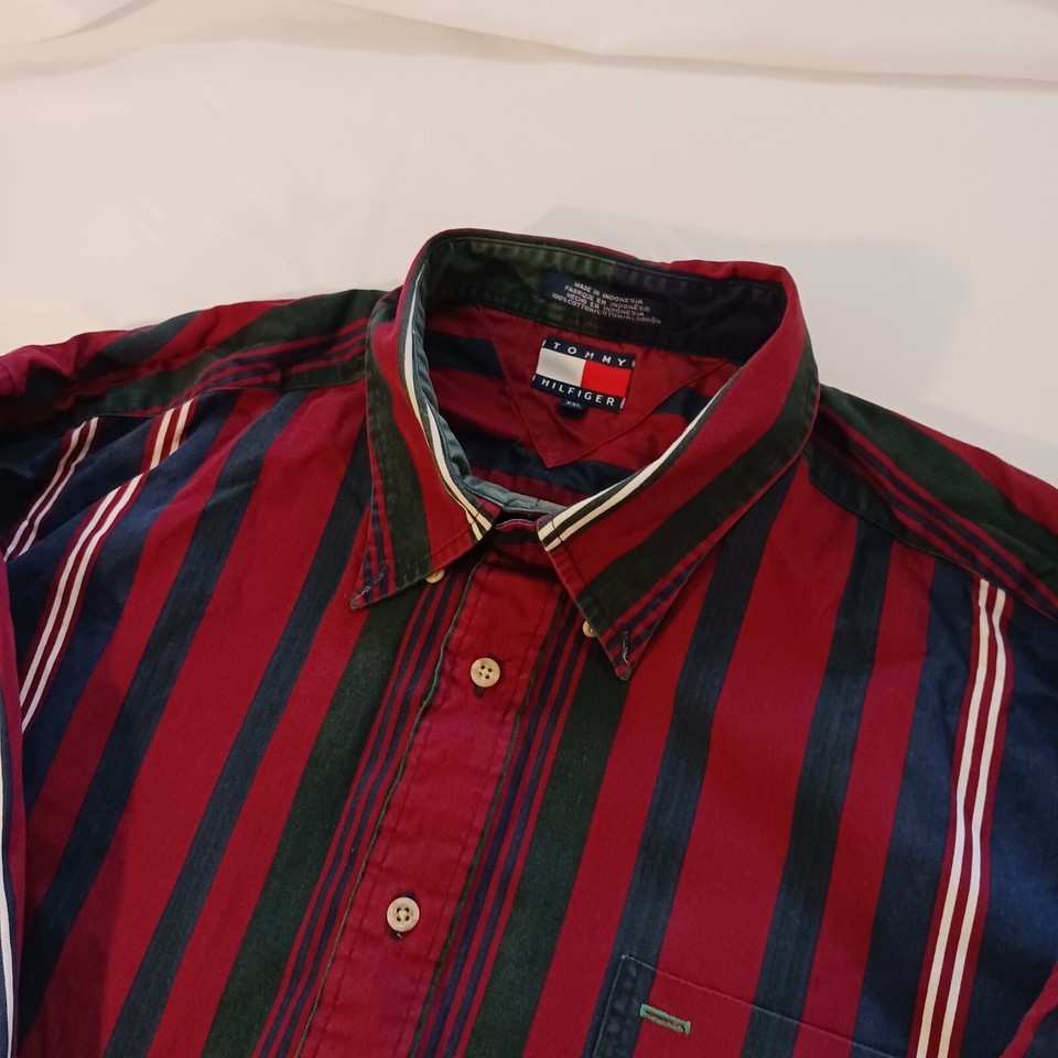 Elevate your wardrobe with this stylish Tommy Hilfiger button-down shirt. The shirt features long sleeves, a collared neckline, and a button-front closure for a classic look that can take you from casual to formal occasions. The striped pattern and multicolor design, along with the logo accents, add a touch of personality to the shirt. Made from a comfortable cotton blend fabric, this shirt is perfect for everyday wear. It is available in size 2XL and fits true to size. Add this versatile shirt to your collection today!