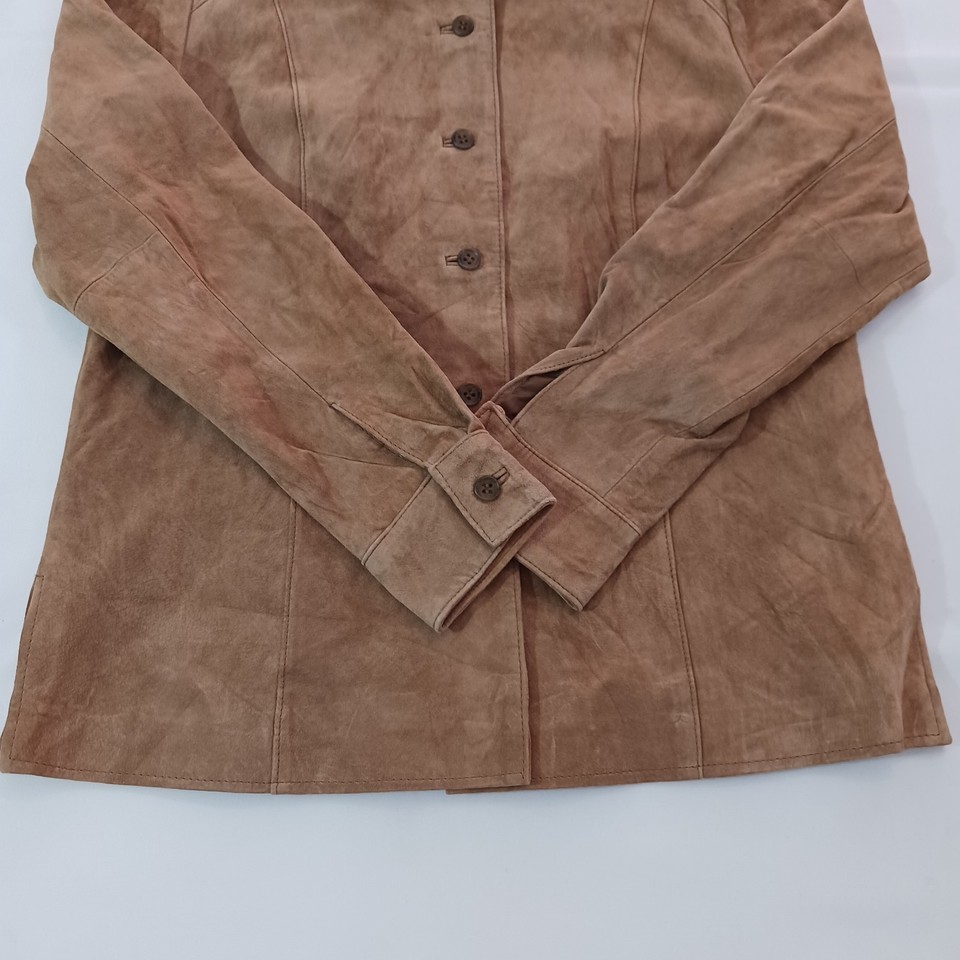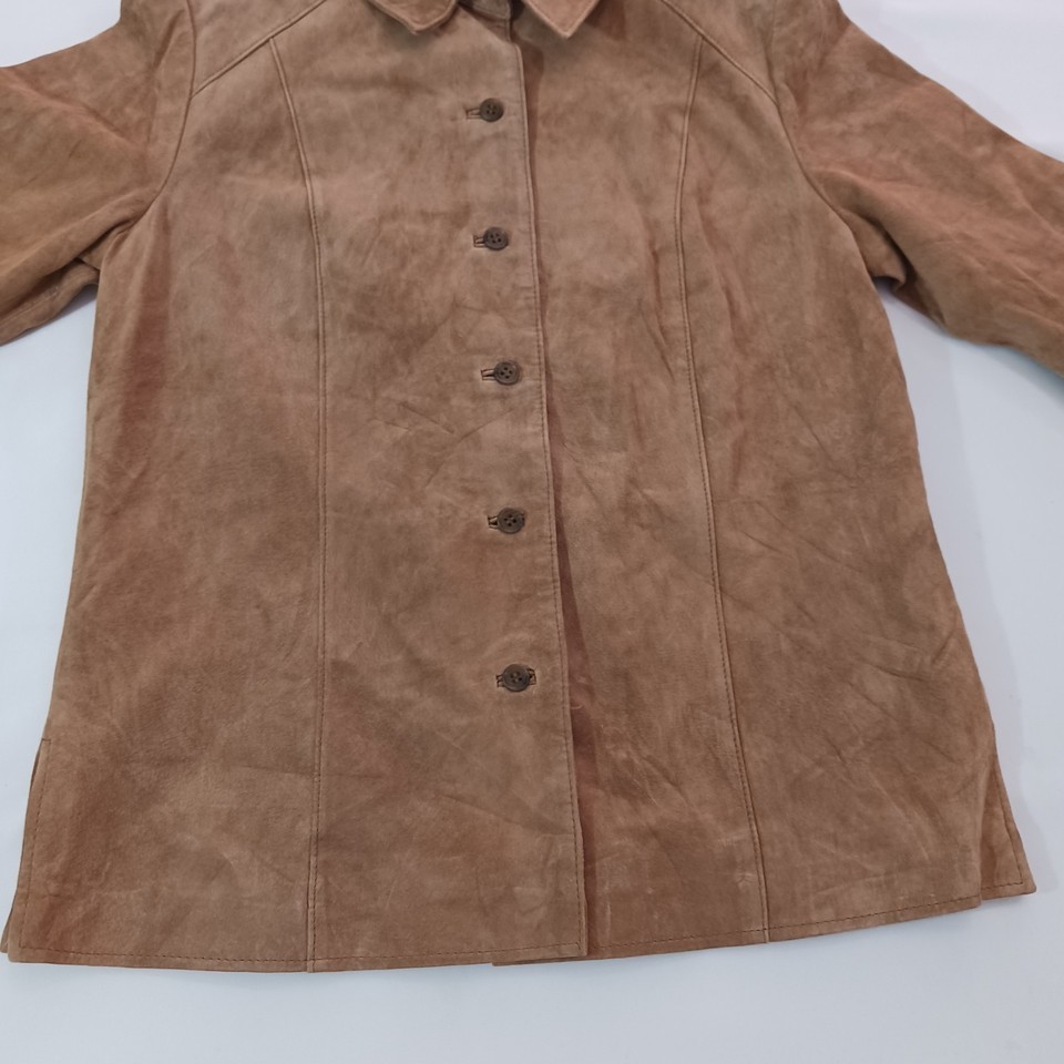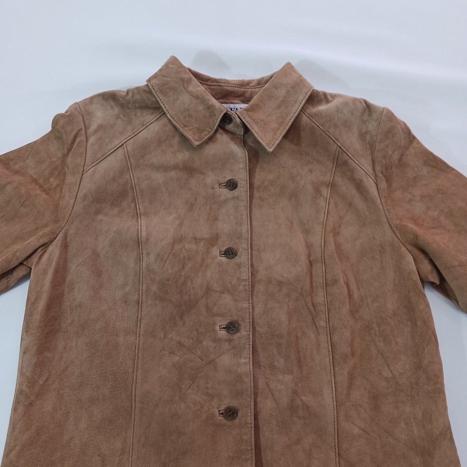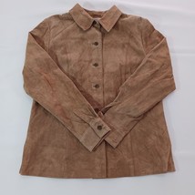 Alfani Petite Women's Brown Full Button Leather Jacket Pockets Size P