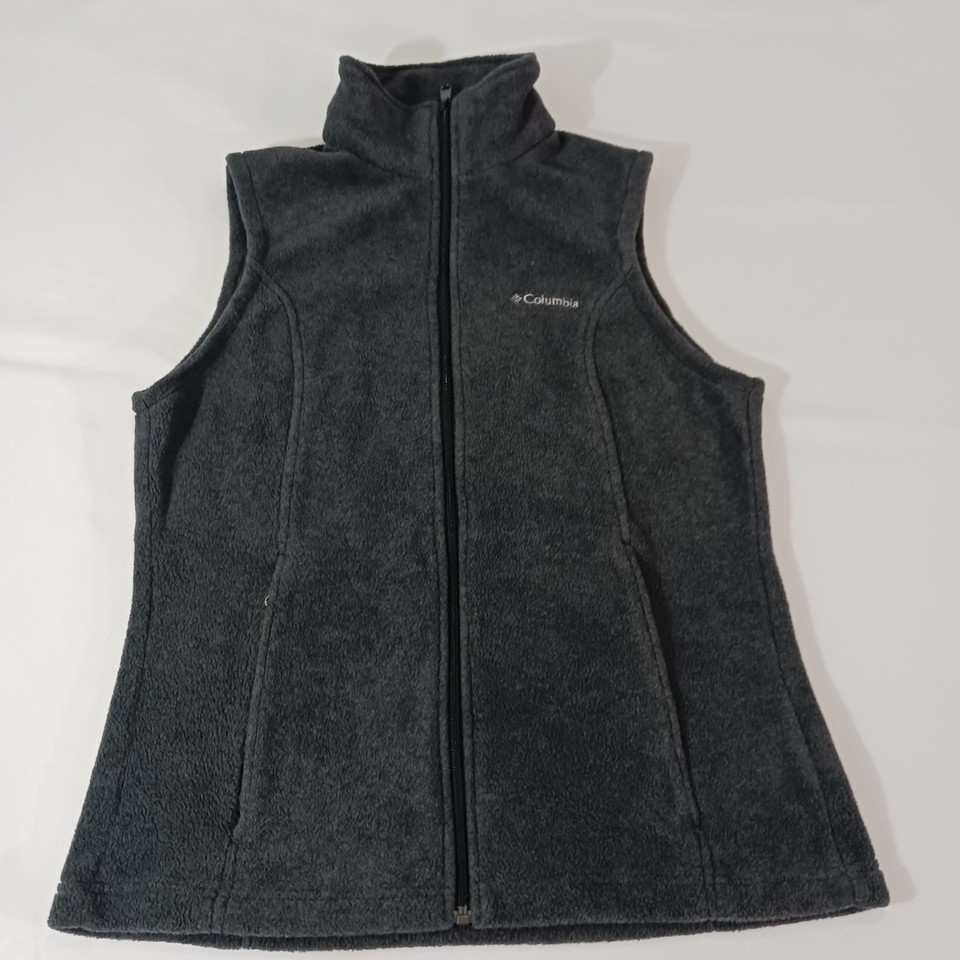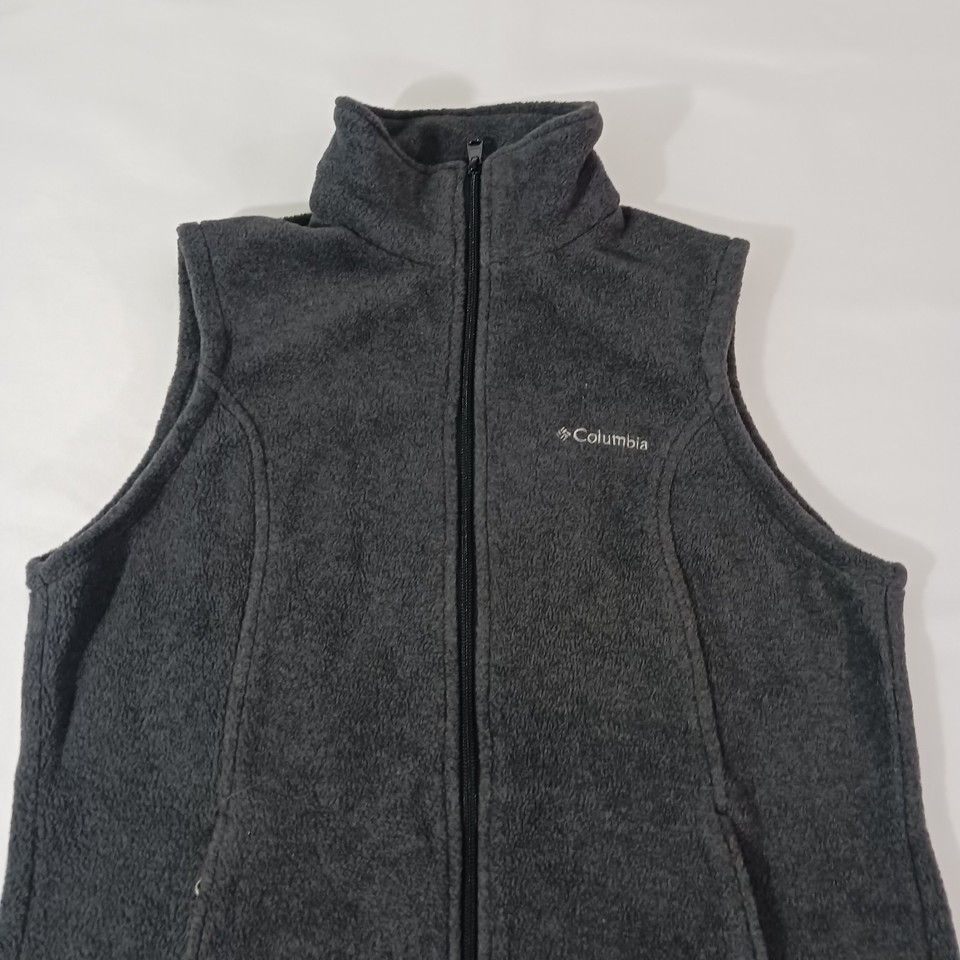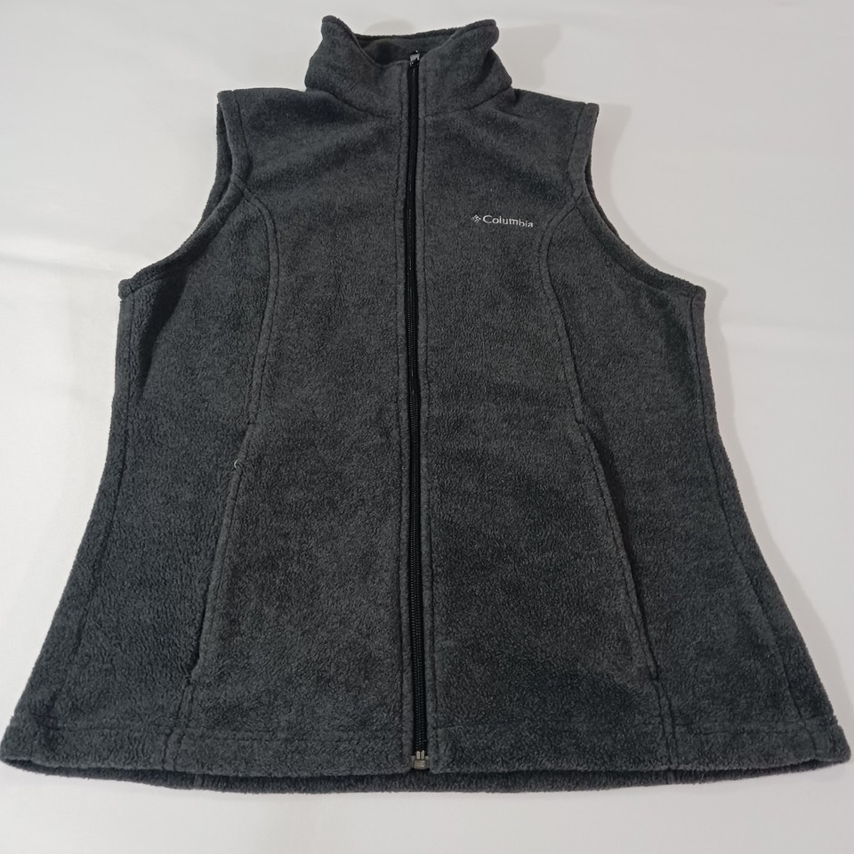 This Columbia Sportswear WL1023 Men's Gray Fleece Vest in size Small features a full zip closure and stand-up collar. Made of polyester fleece material, it offers warmth and comfort for activities like walking, golf, and hiking in the fall and spring seasons. With a solid gray color and two pockets, this versatile vest is suitable for travel, casual wear, or workwear. The Columbia Pfg model reflects the brand's reputation for quality outdoor apparel.