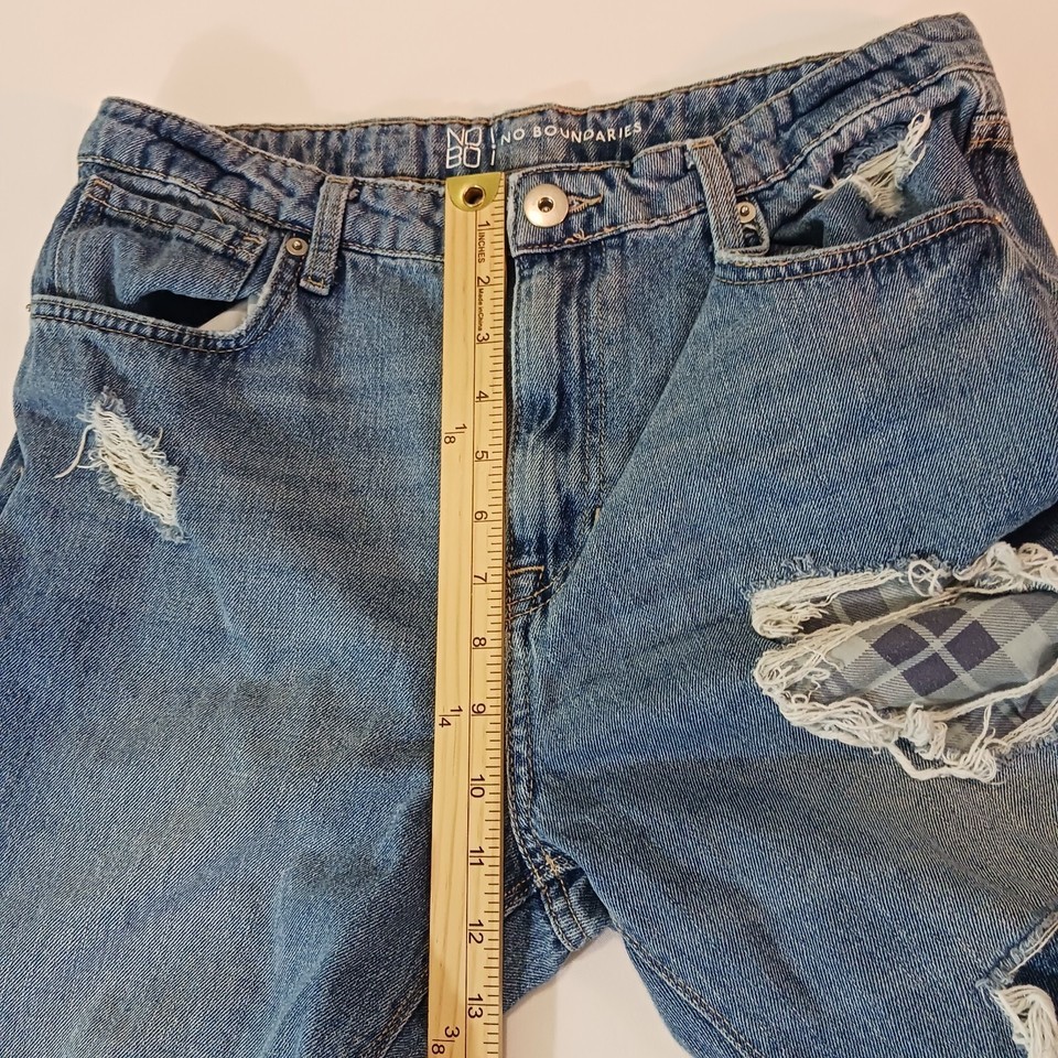 No Boundaries Women's Medium Wash Blue Cotton Distressed Jeans Size 13 (32×26.5)