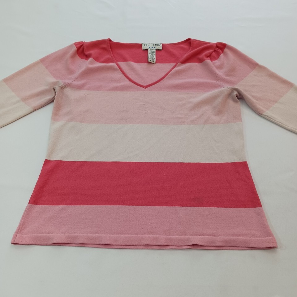 Covington RN#15099 Women’s Pink & White Striped 3/4 Sleeve Pullover Shirt Size M