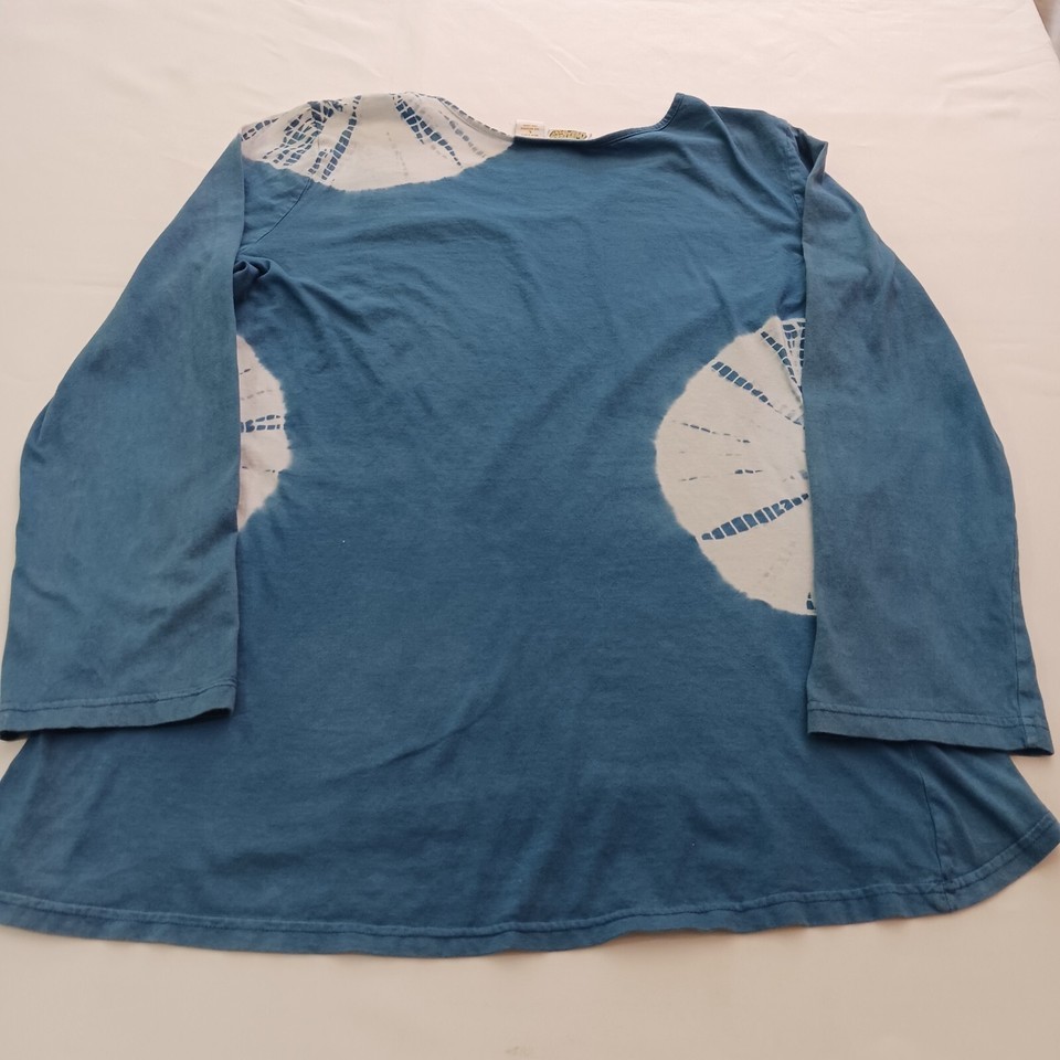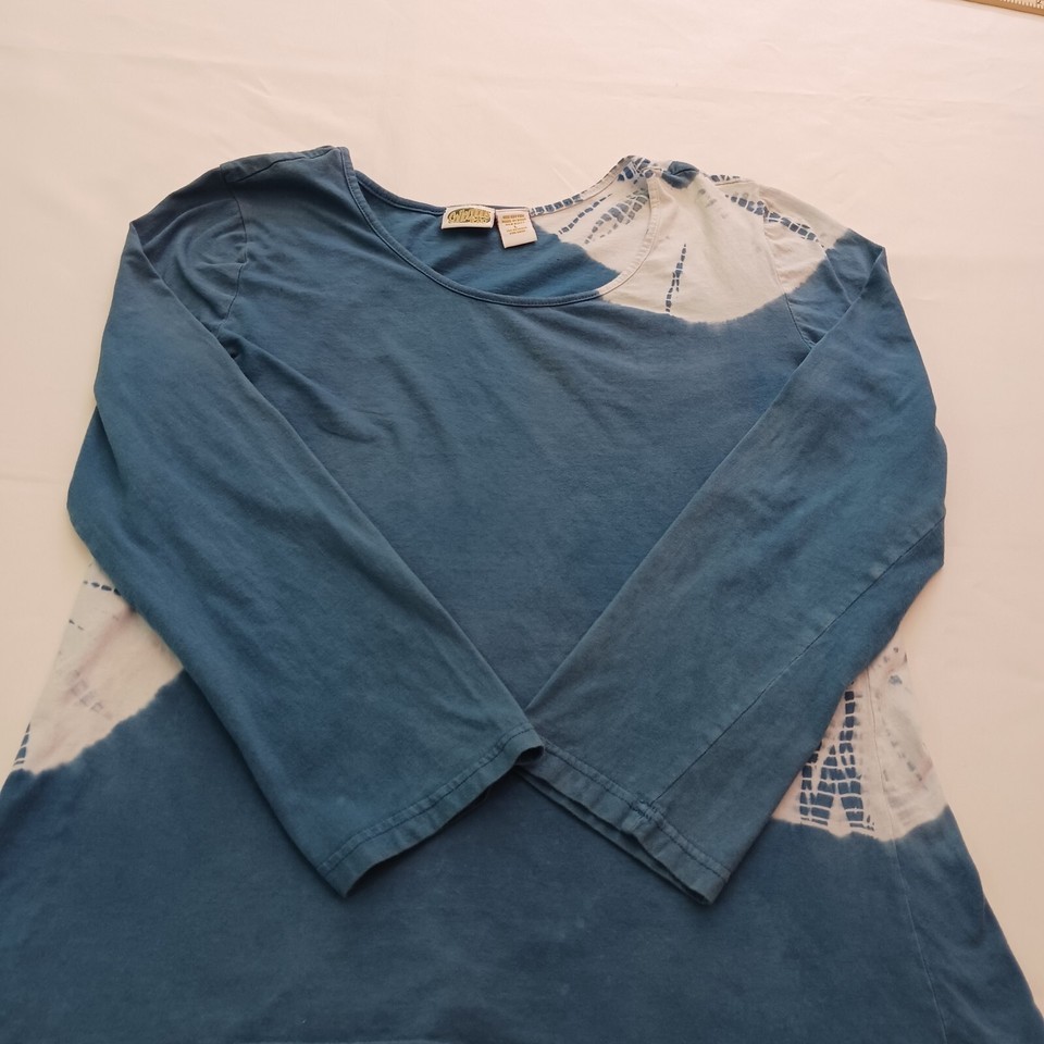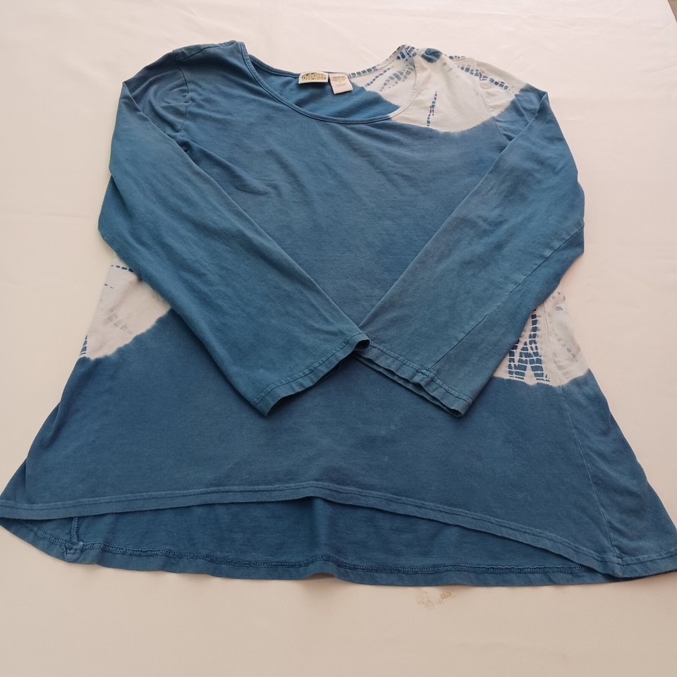 Collections Etc. RN#87077 Round Neck Women's White & Teal Cotton Blouse Top Sz L