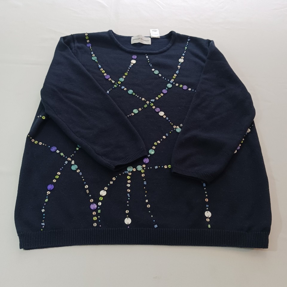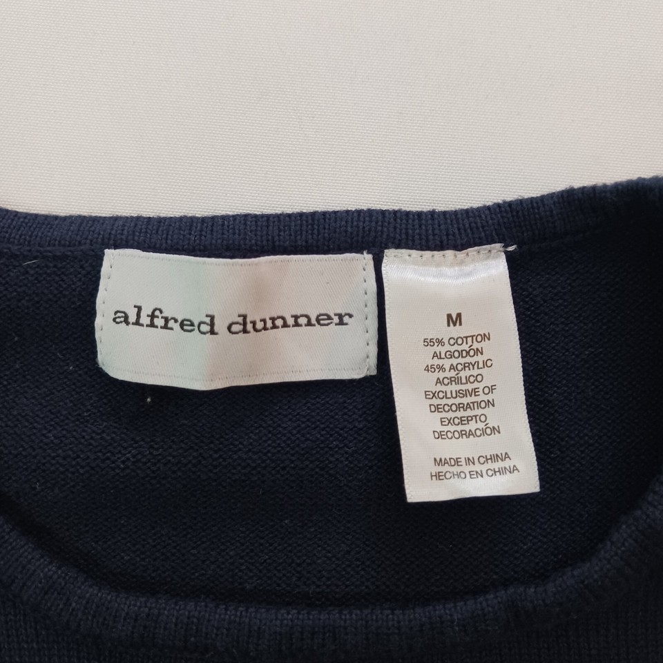 Alfred Dunner RN#19232 Round Neck Women's Blue Cotton Blend Sweater Top Size M
