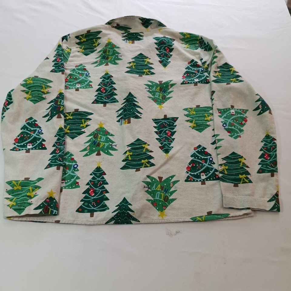 Old Navy RN#54023 Women's White & Green Cotton Holliday Christmas Shirt Size M