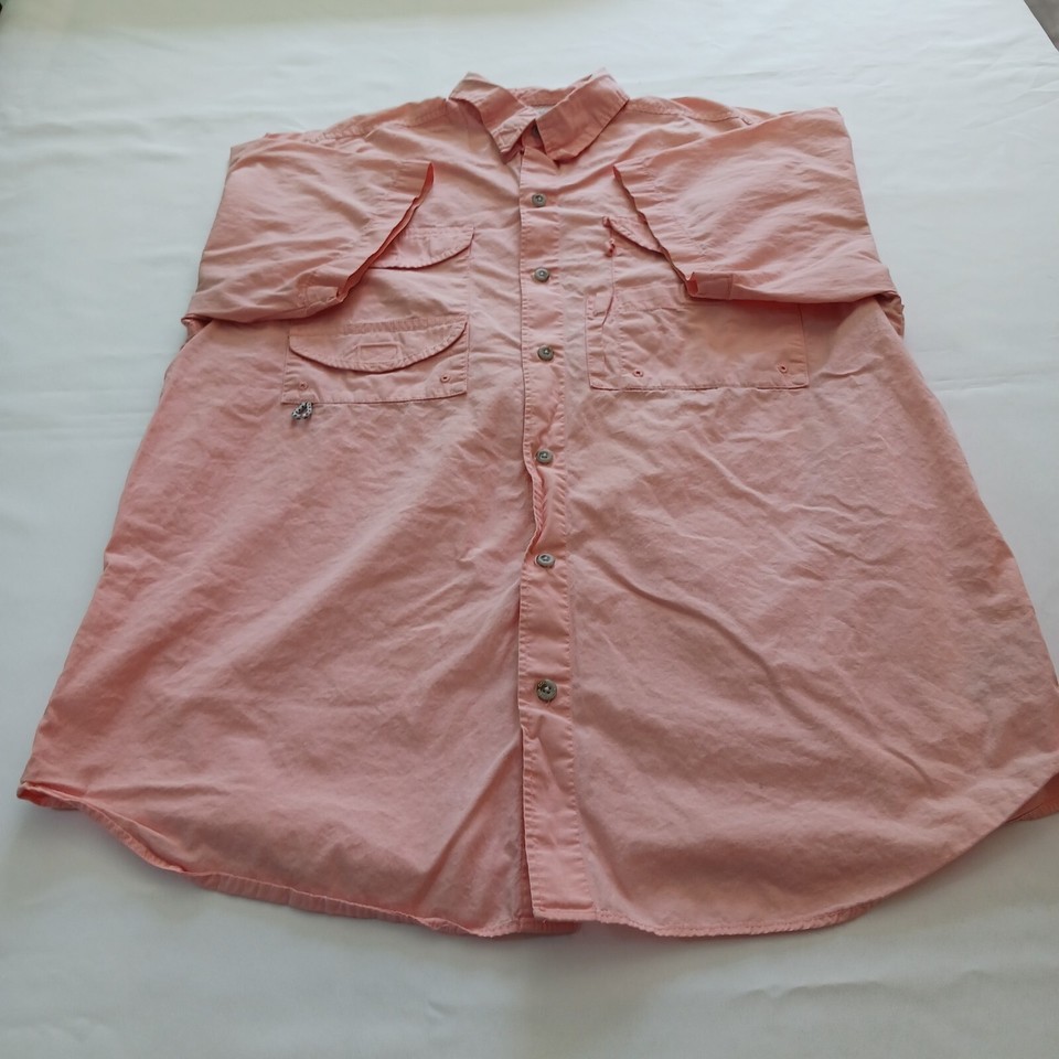Columbia FM7130 Mens PFG Bonehead Short Sleeve Shirt Peach Fishing Measured Sz M
