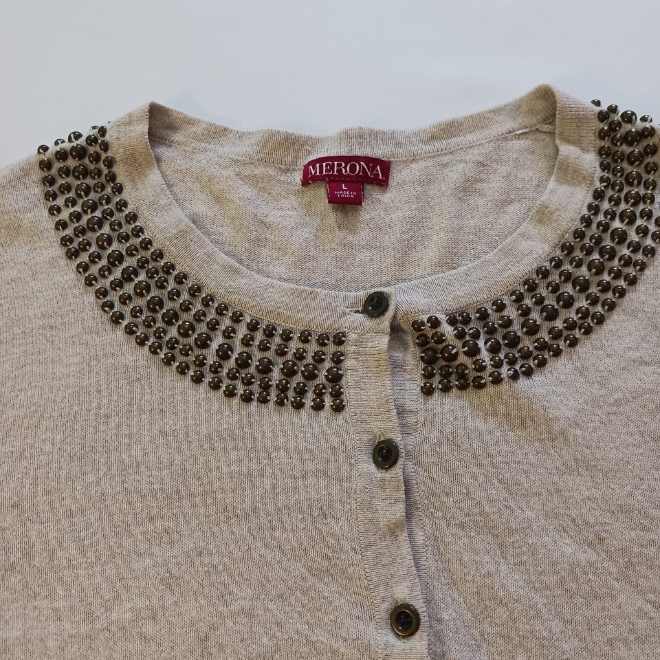 Merona Round Neck Button Up Women's Top Sweatshirt Cream Size Large
