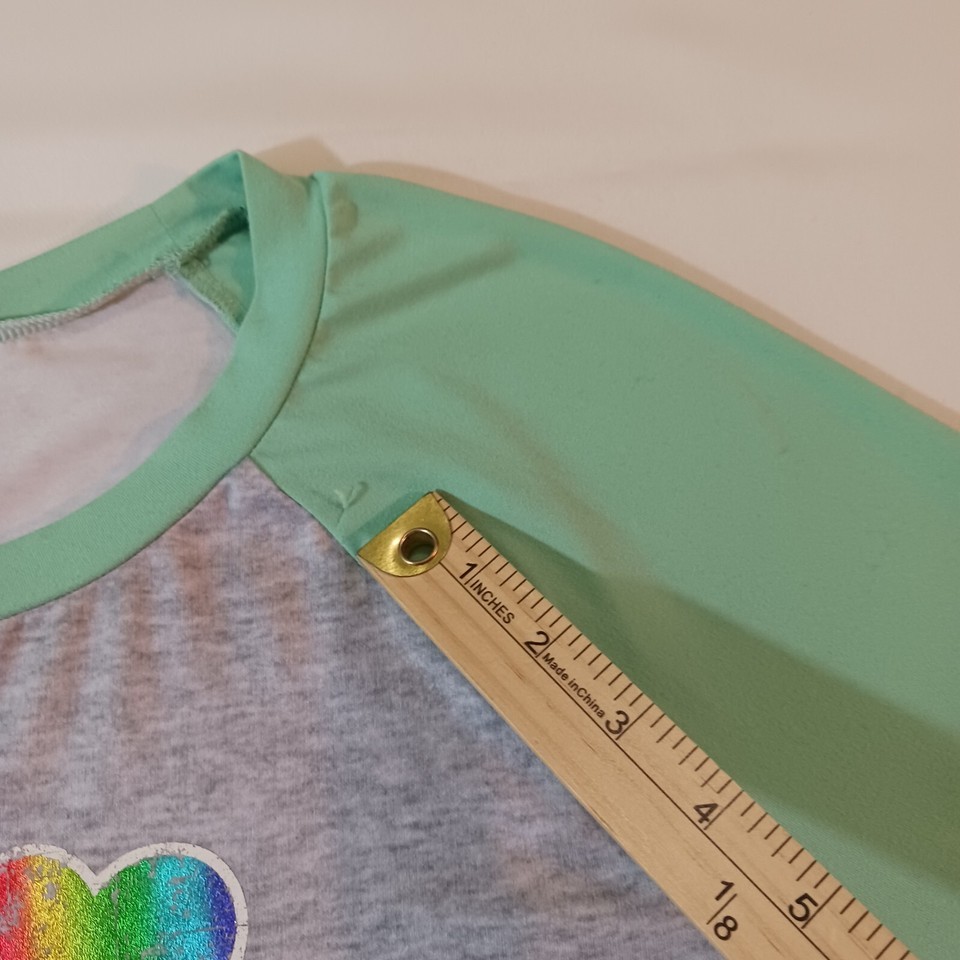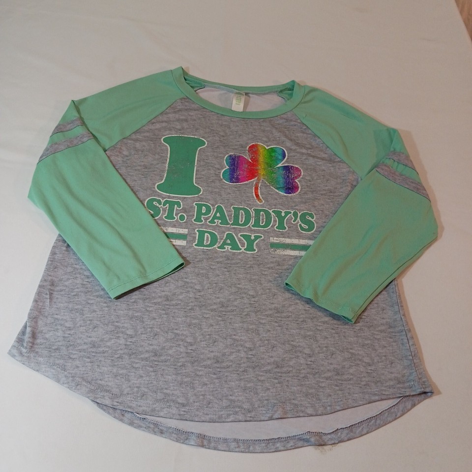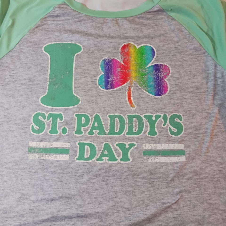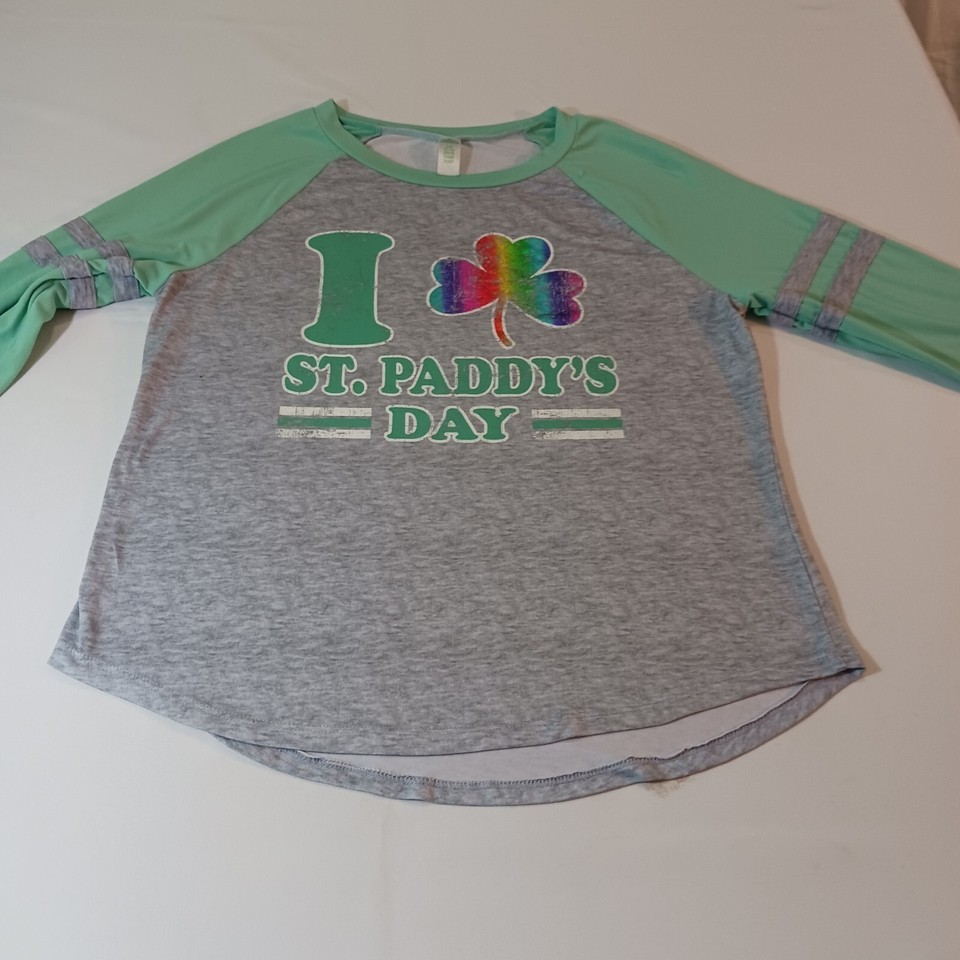 I Love St Paddy's Day Women’s Green & Gray Raglan St Patrick's Day Shirt Size L