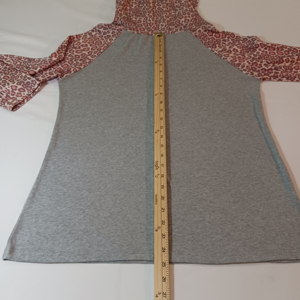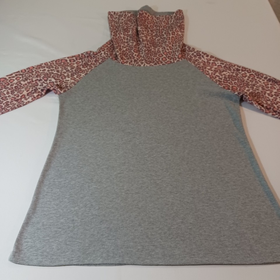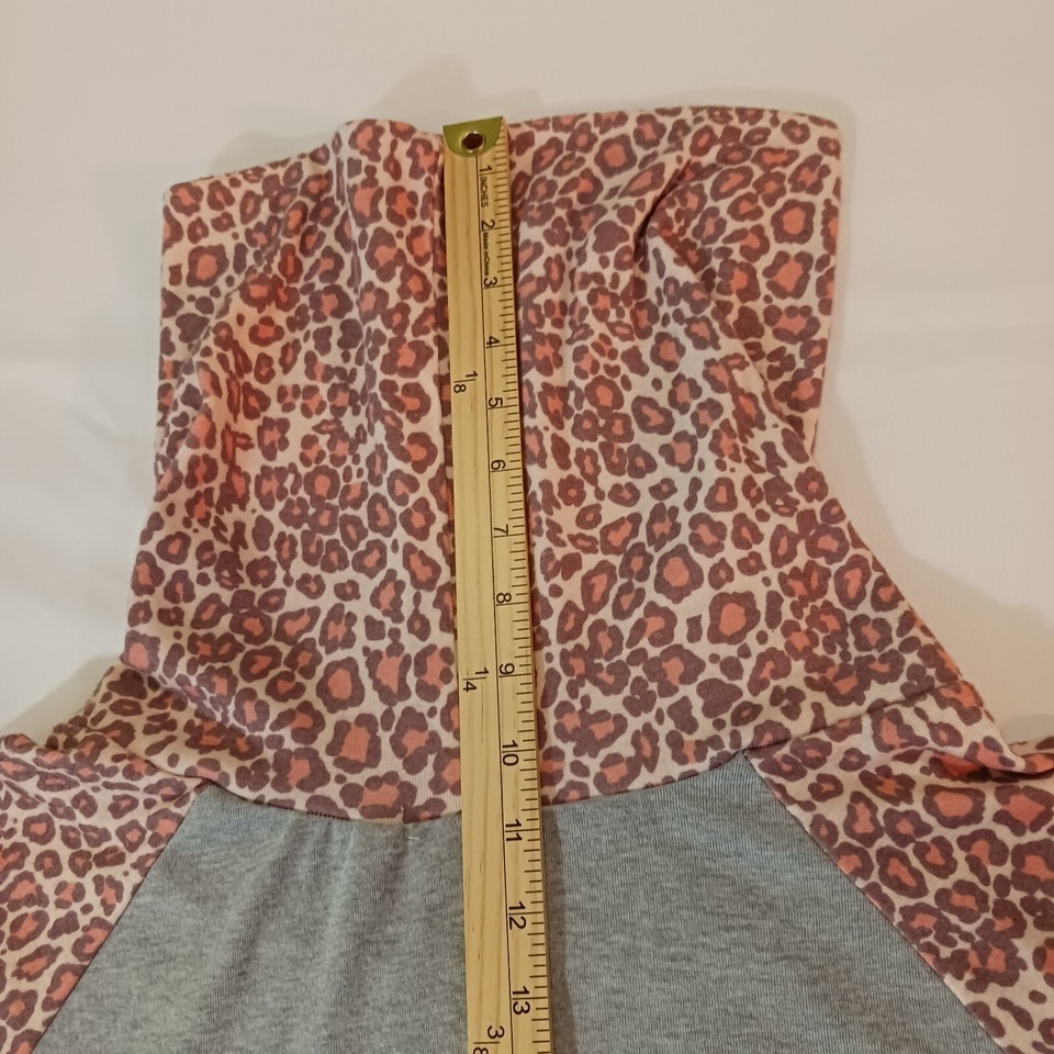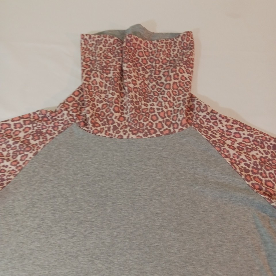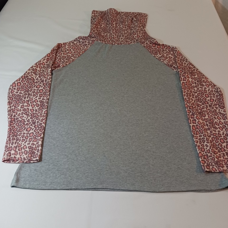 Qearal Women's Gray & Brown Leopard Print Turtleneck Collar Sleeve Sweatshirt L