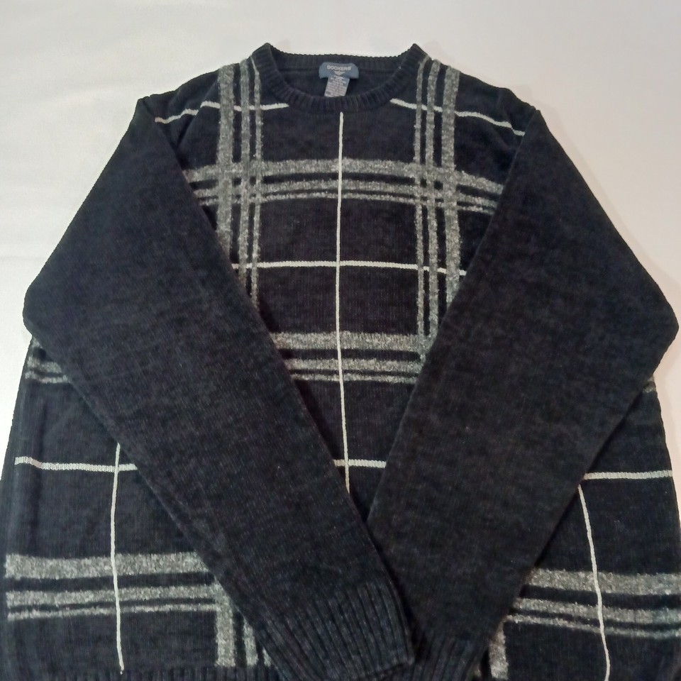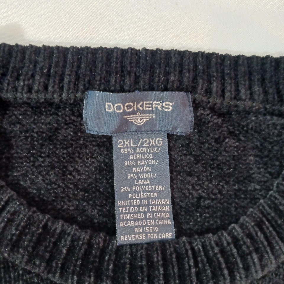 This listing features a Dockers men's pullover sweater in a classic black color with gray accents. Made from lightweight acrylic material, this sweater has long sleeves and a pullover style, making it a versatile and comfortable addition to any wardrobe. With a size of 2XL, this sweater is designed for a regular fit, suitable for men who prefer a relaxed and cozy look. Perfect for casual wear, this Dockers sweater combines style and comfort for everyday use.