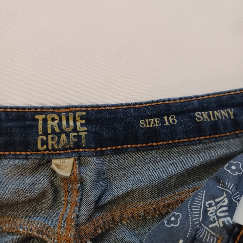 True Craft Jeans Women's 16 Blue High-Rise Skinny Denim Pants 35x25-Measured