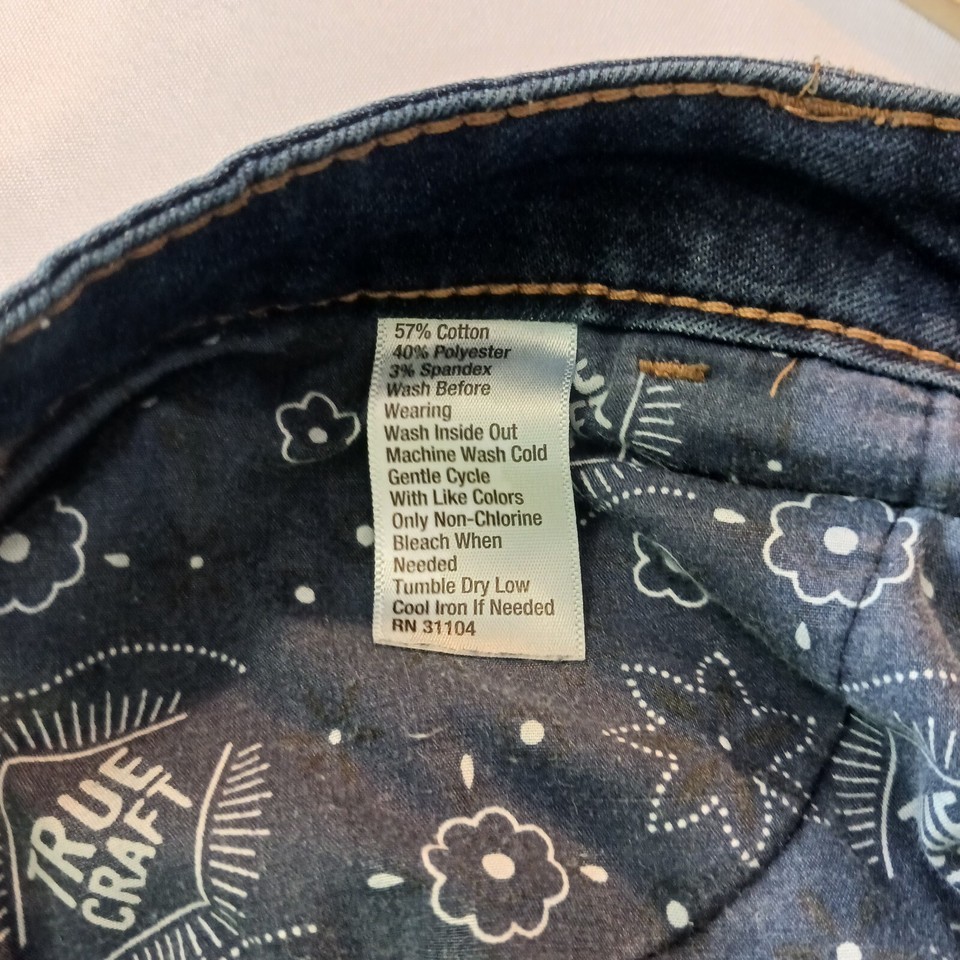 Elevate your denim game with these True Craft high-rise skinny jeans in a beautiful blue color. These pre-owned pants are perfect for any occasion, featuring a zip closure and button accents. The fabric is a blend of polyester, spandex, and cotton, with a denim texture that gives them a trendy look.