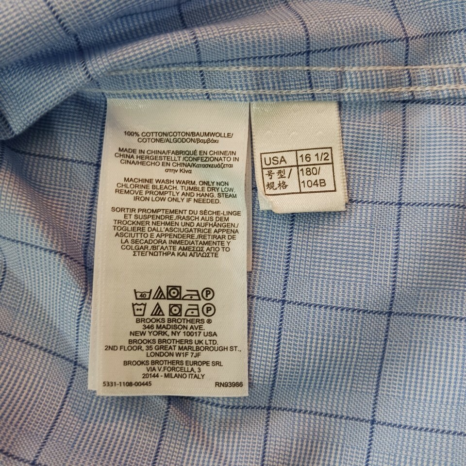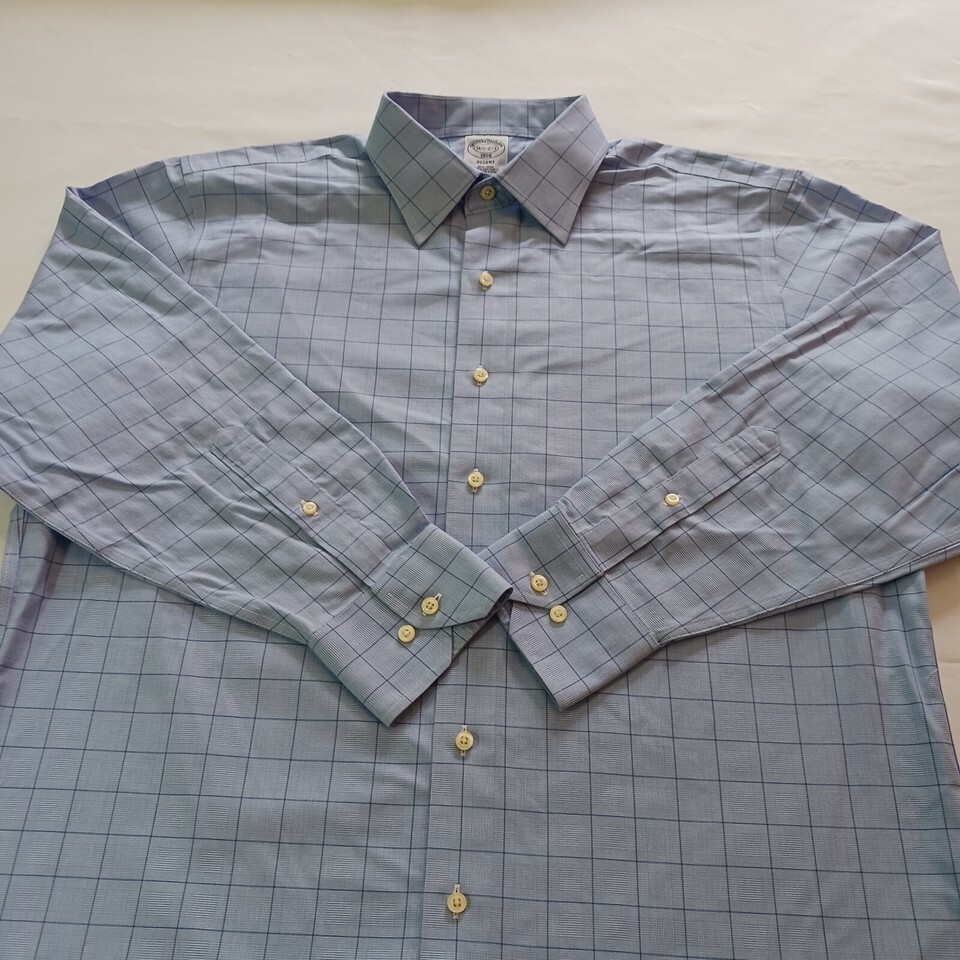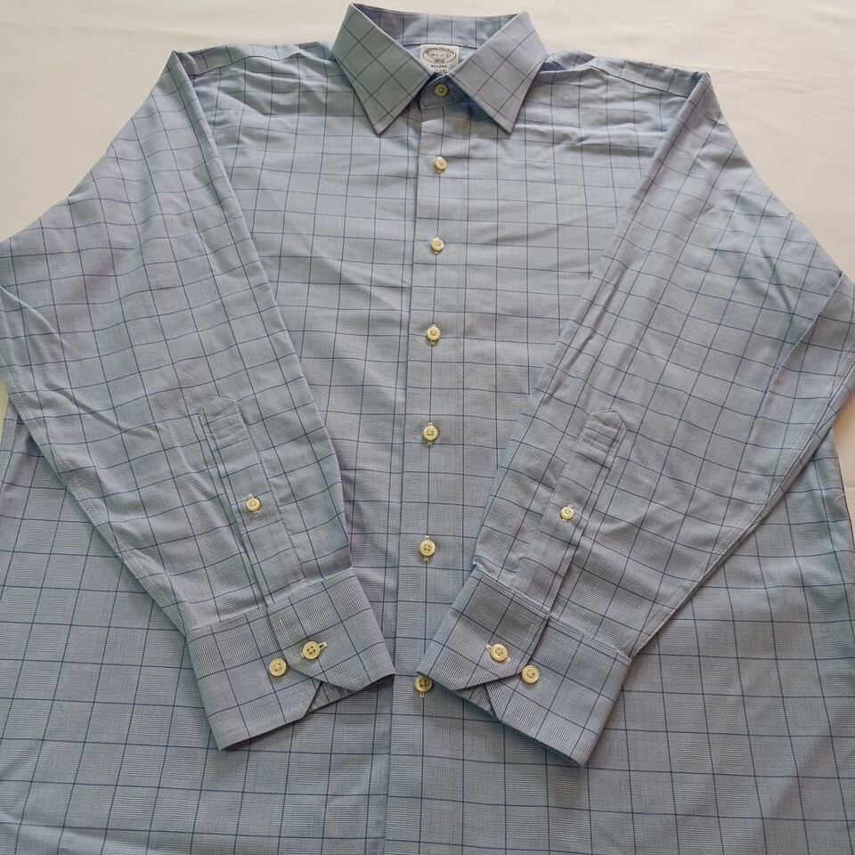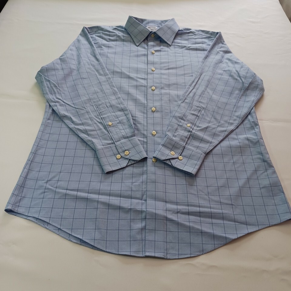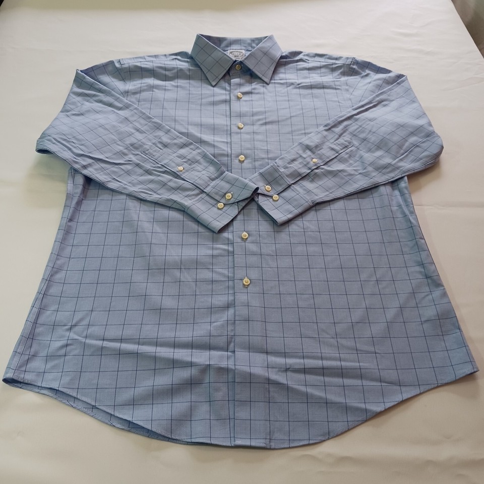 Men’s Brooks Brothers Regent Blue Check Button Up Shirt Long Sleeve Size 16 1/2