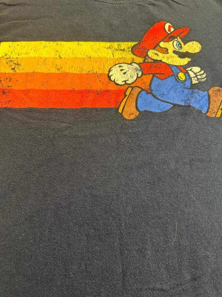 Super Mario Adventures Graphic T-Shirt Men's Gray Cotton Crew Neck Tee Size M