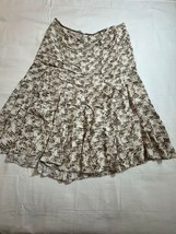This Kasper skirt is designed for women in a size 14 with a flattering flare style and a length of 28 inches. The skirt features a floral pattern in tan and brown colors, with button and pleated details for added elegance. Made of a blend of polyester and rayon, this skirt is easy to care for as it is machine washable. Perfect for various occasions, this pull-on skirt offers both style and comfort for the modern woman.