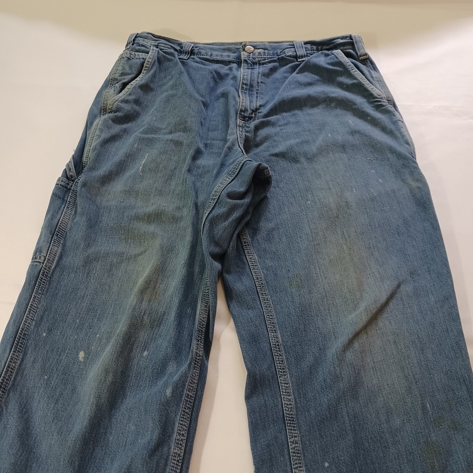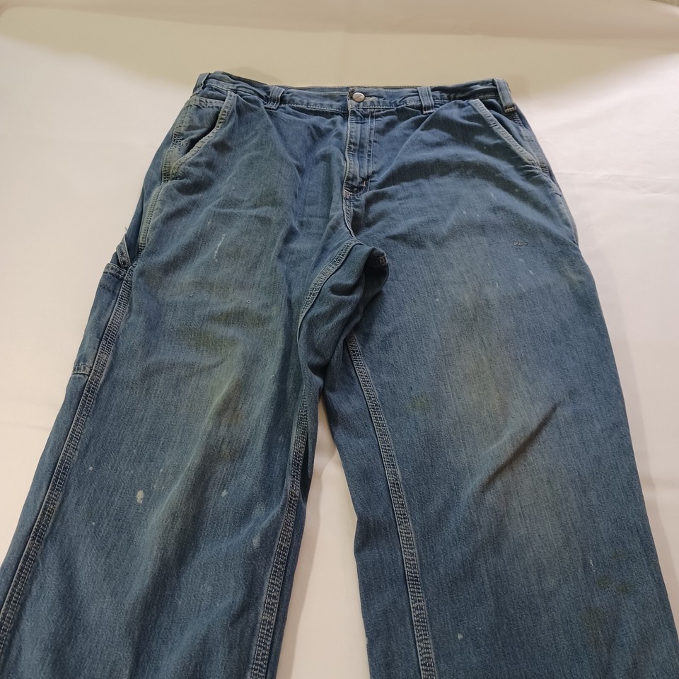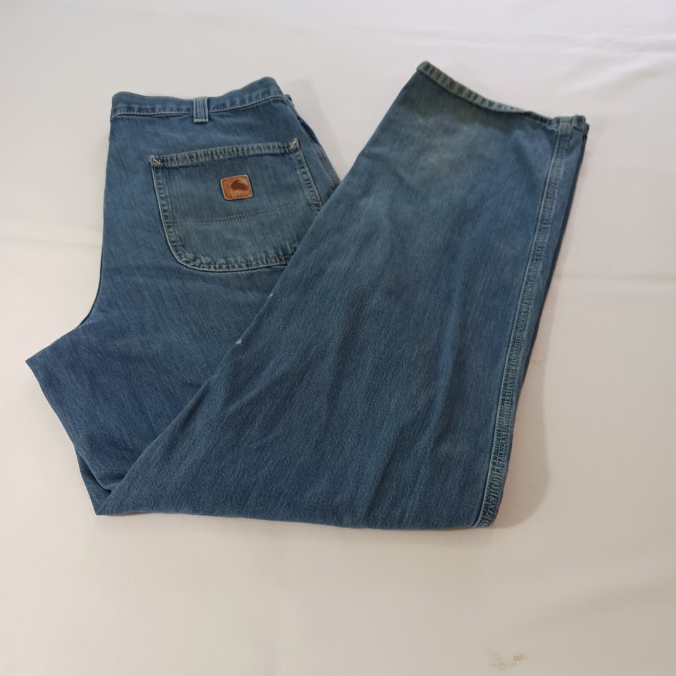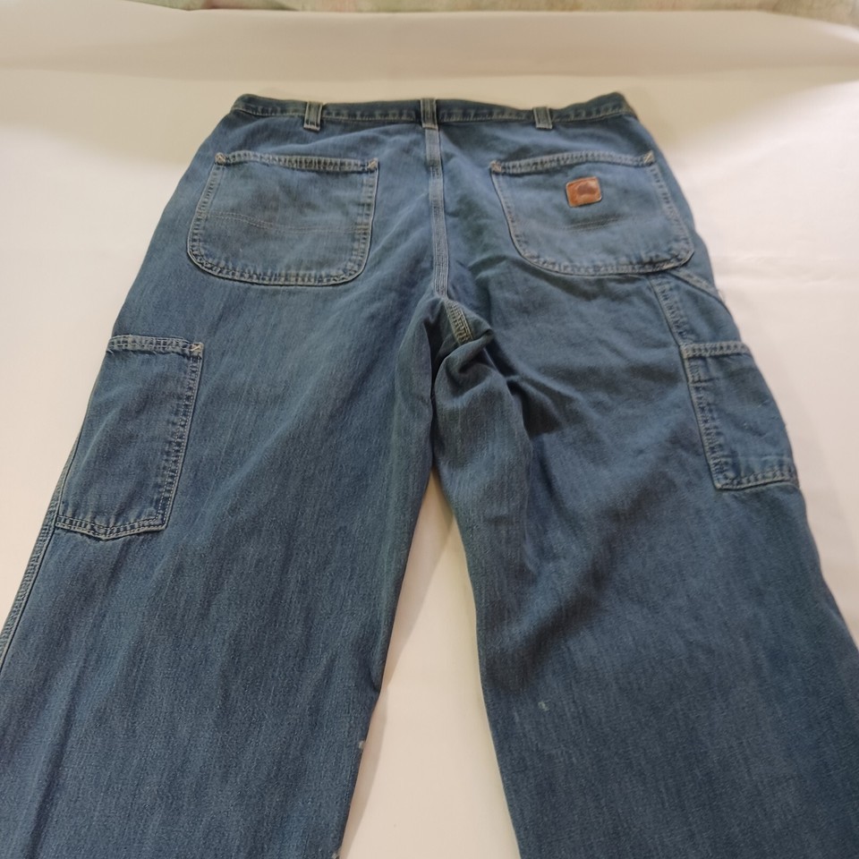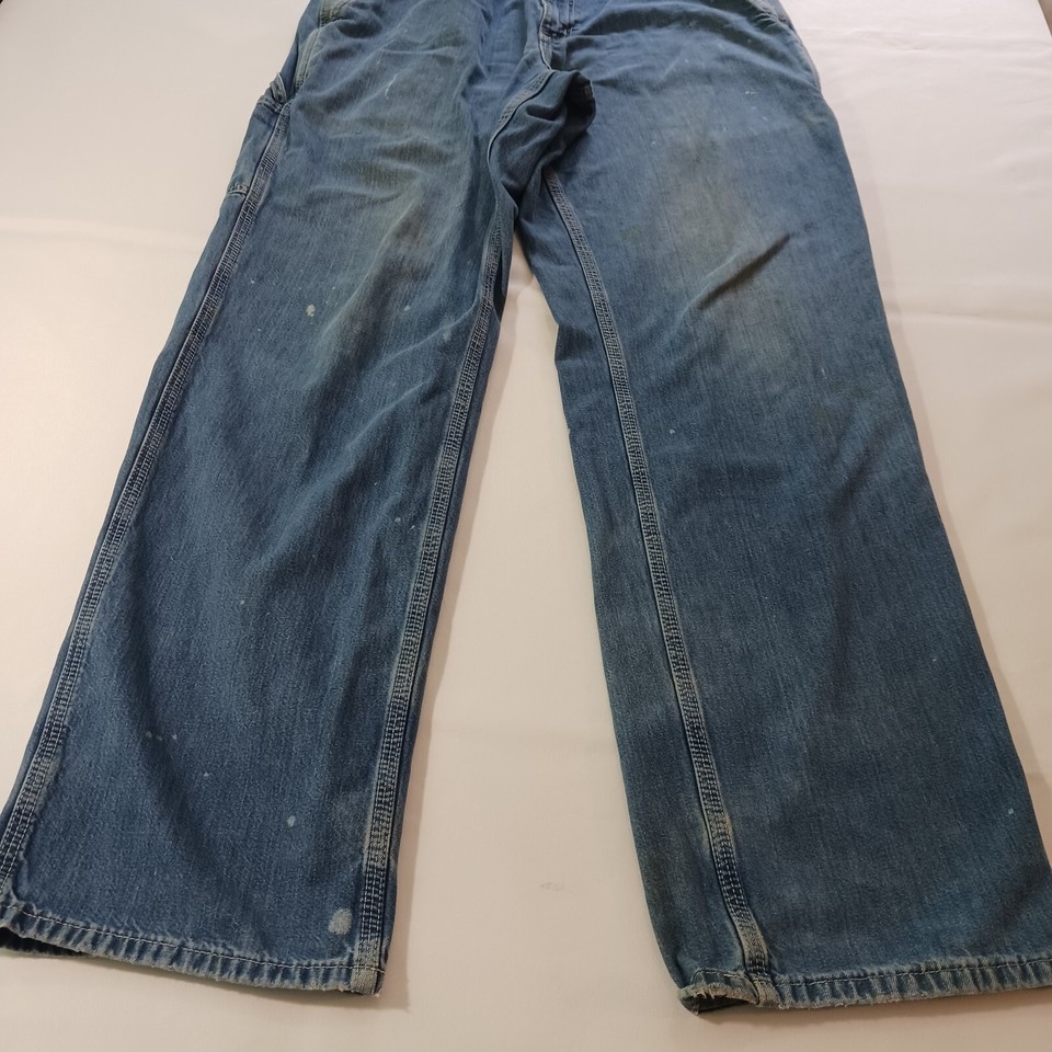 Carhartt 382-83 Dungaree Fit Men's Cotton Blue Carpenter Work Jeans Size (34×34)