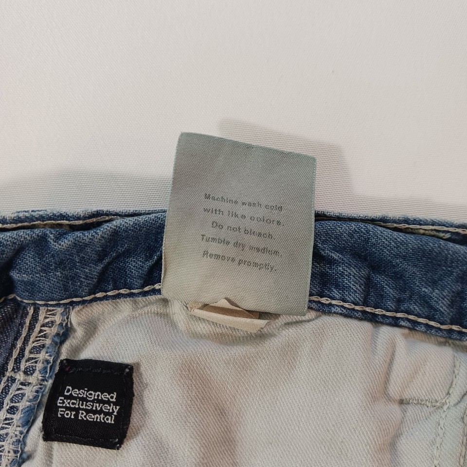 This pair of Carhartt 382-83 Dungaree Fit Men's Cotton Blue Carpente Work Jeans is perfect for those who want a solid pattern with a zip and button closure. The jeans are made of 100% cotton denim material, ensuring comfort and durability. The mid-rise jeans have a straight leg style and a waist size of 34 inches, with an inseam of 34 inches.