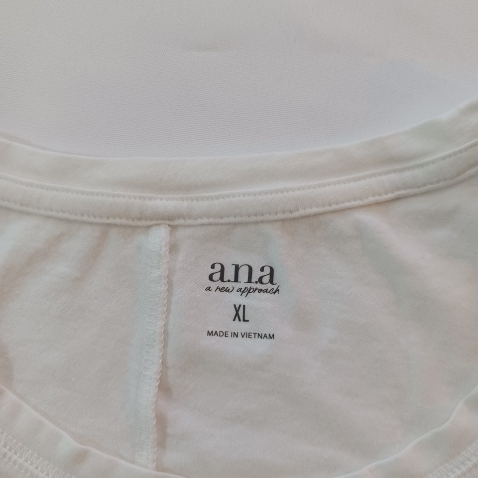 Ana A New Apparel RN#93677 Women's White Cotton Blend T-Shirt Long Sleeve Sz XL