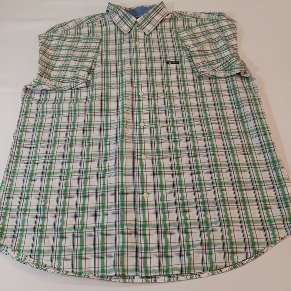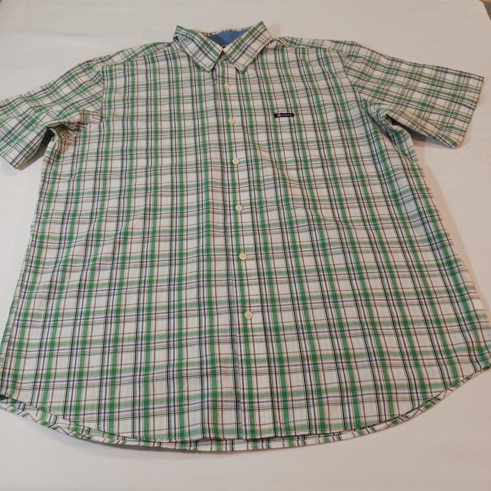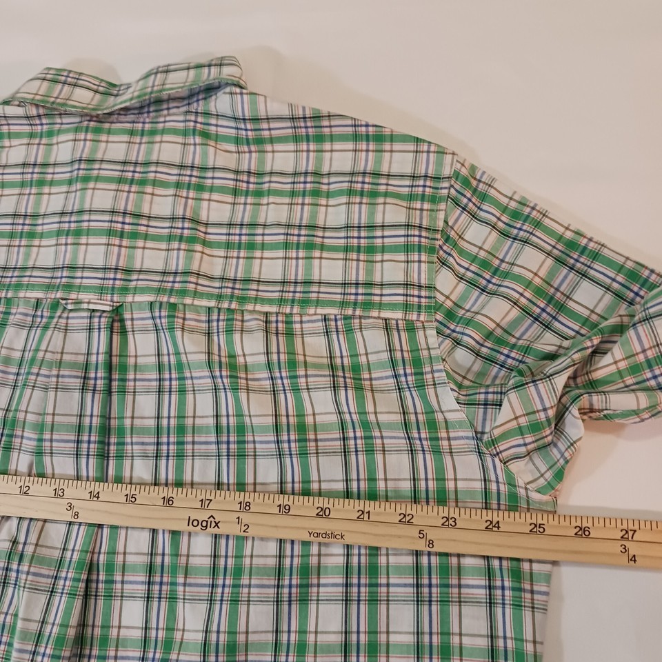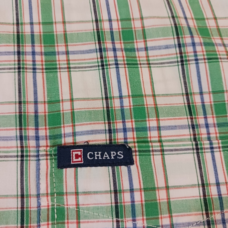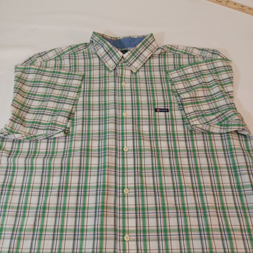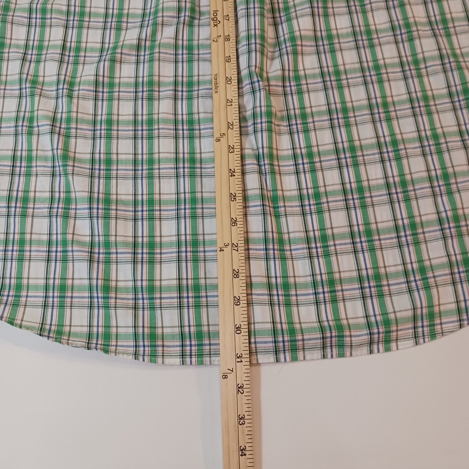 Chaps Easy Care Men's Green & White Cotton Blend Plaid Shirt Button-Down Size XL