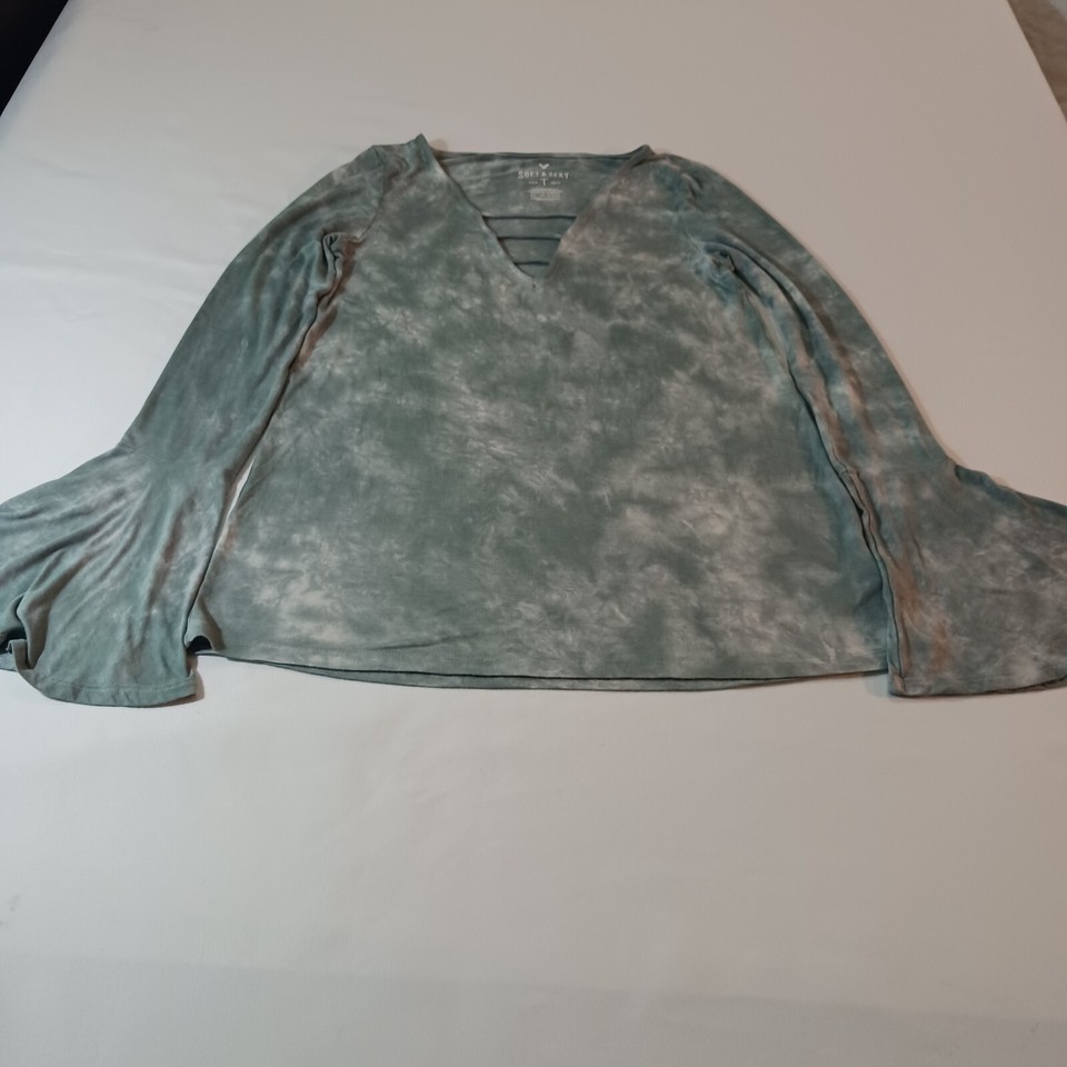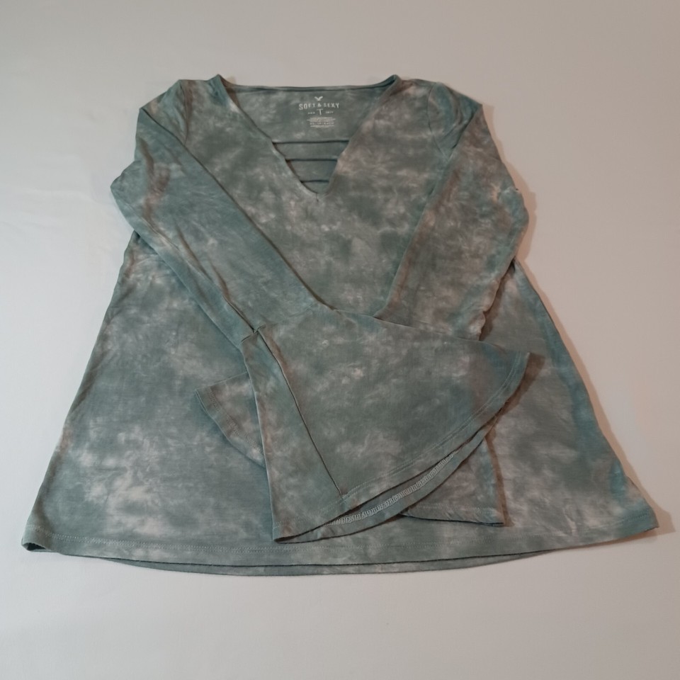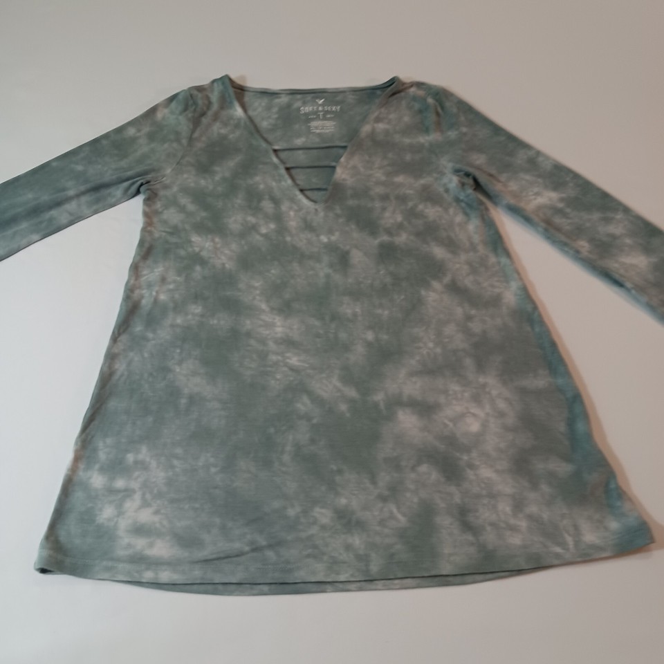Soft & Sexy American Eagle Women's Size XS Stretch Green Blouse Top Long Sleeve