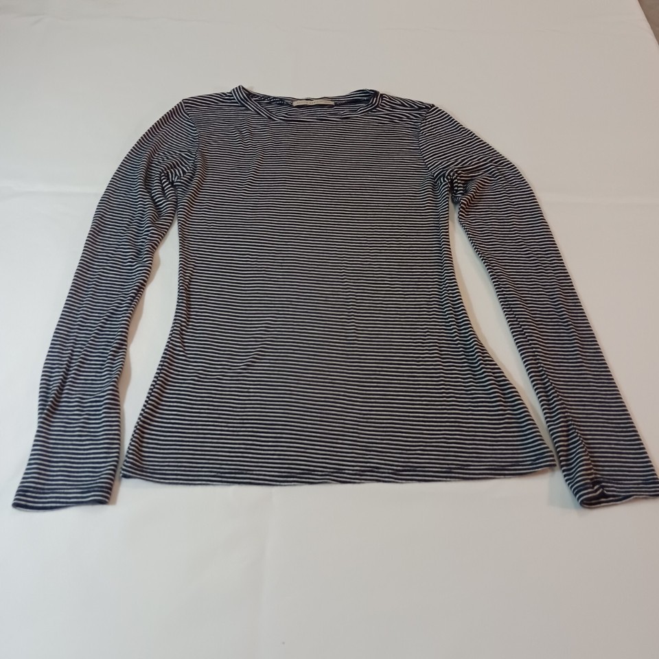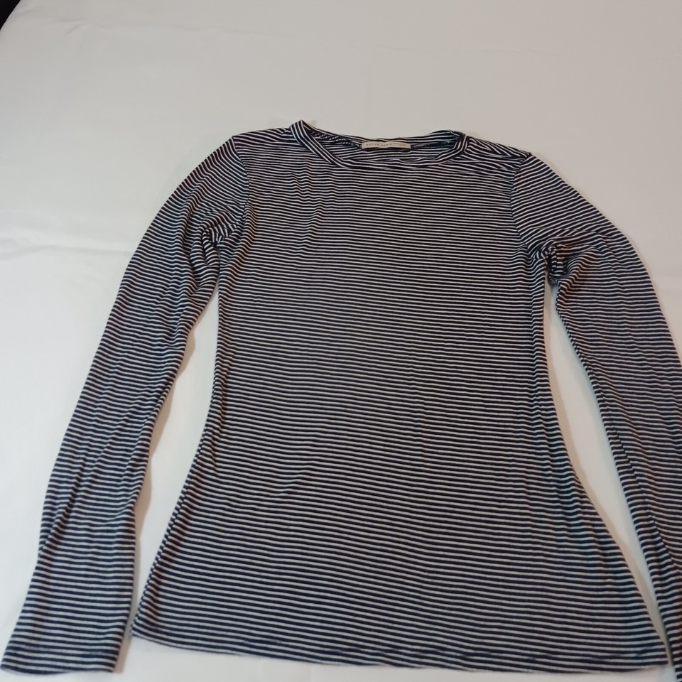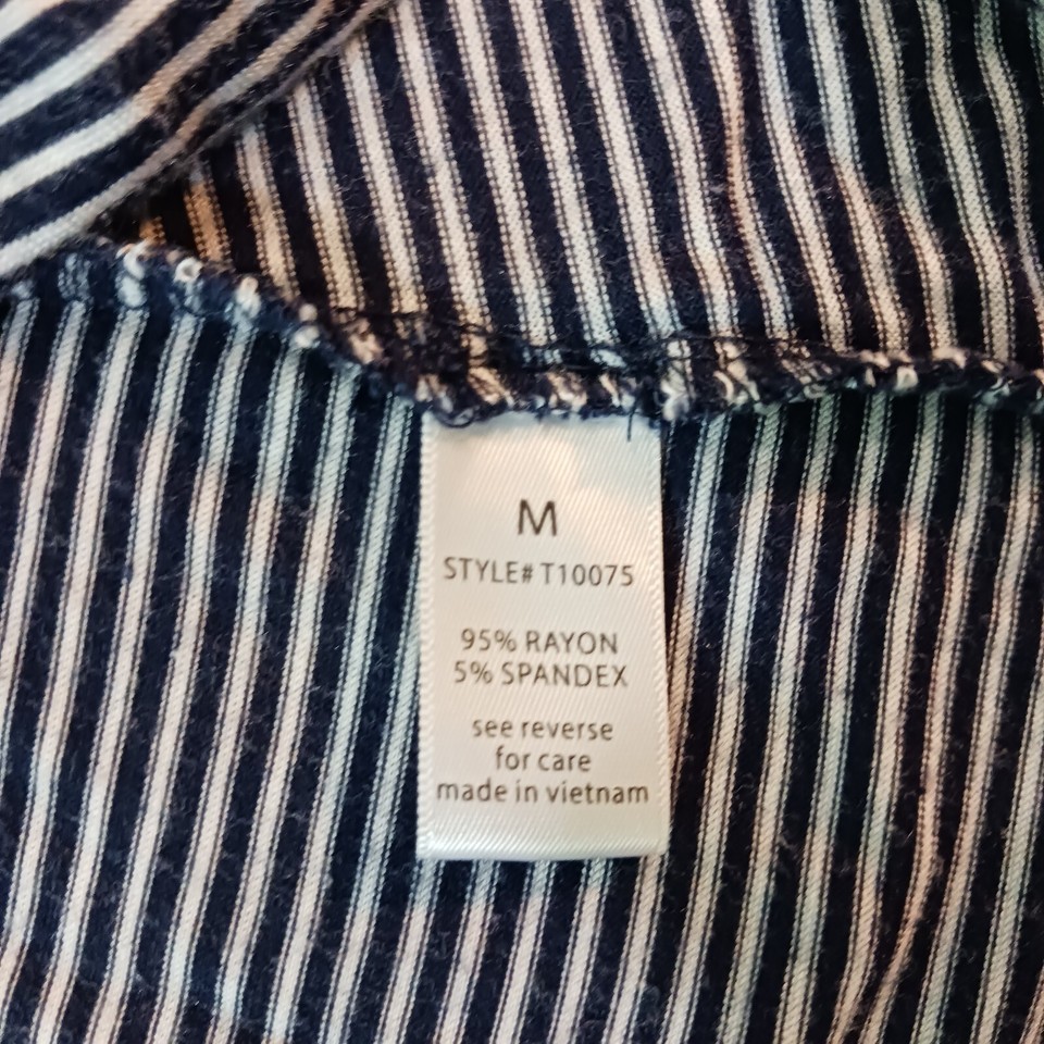 Active Basic T10075 Womens Black & White Stripes Ribbed Stretch Casual T-Shirt M