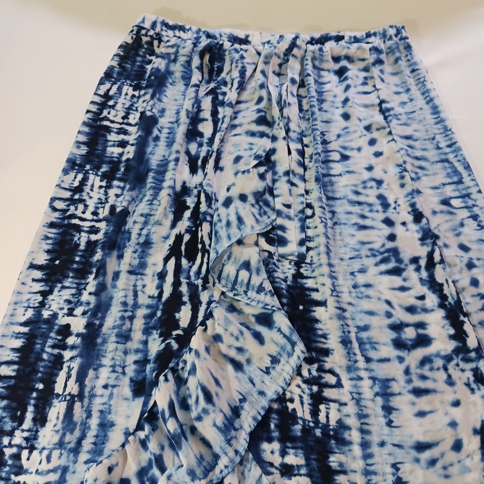 Time and Tru Women's Blue & White Elastic Waist Midi Crinkle Skirt XL (16-18)