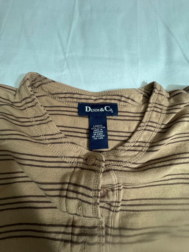 Denim & Co Women’s Brown Stripes 3/4 Sleeve Cotton Blouse Shirt Top Size Large added to cart.