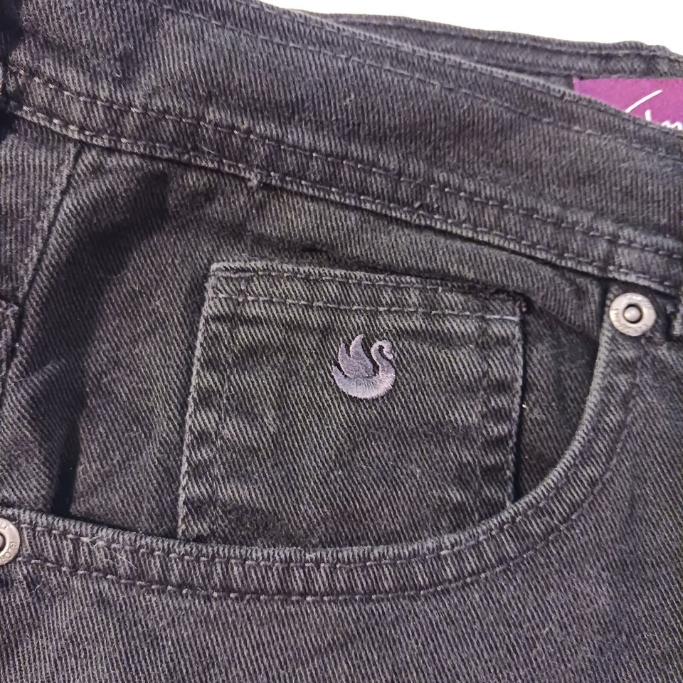 Elevate your wardrobe with these stylish Gloria Vanderbilt jeans for women. These pre-owned black jeans are made of a comfortable spandex and cotton blend with a denim fabric type and a medium wash. The jeans feature a straight leg style with a high rise waist size of 34 inches and an inseam of 26.5 inches.