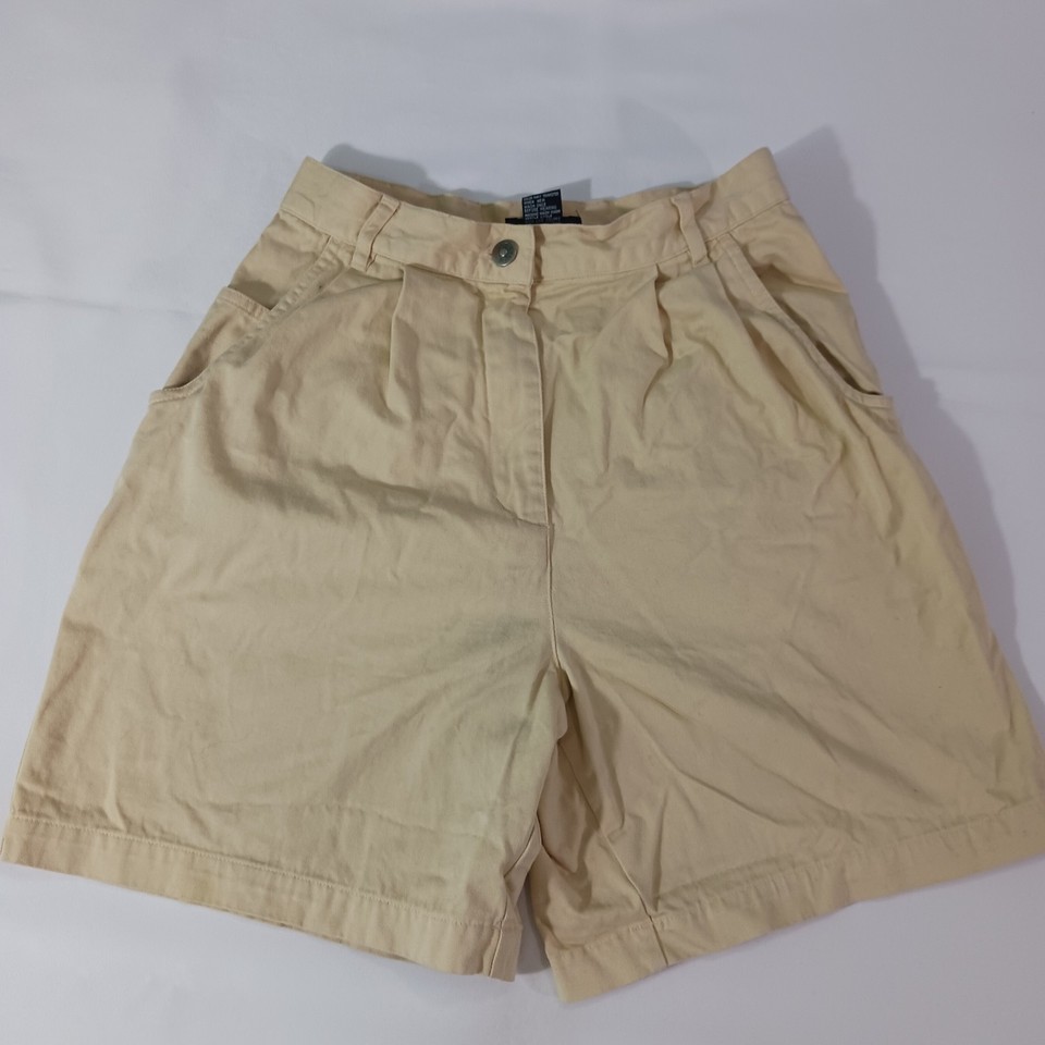 These vintage Style Co shorts are crafted from yellow cotton material with a high-waisted, pleated front design. The Bermuda style features a button closure and a classic fit, suited for women in size 6 with a 26-inch waist. Perfect for travel or casual occasions, these shorts exude a 90s preppy vibe with a touch of classic charm. The shorts also come with pockets for added convenience, making them a stylish and practical choice for various outings.