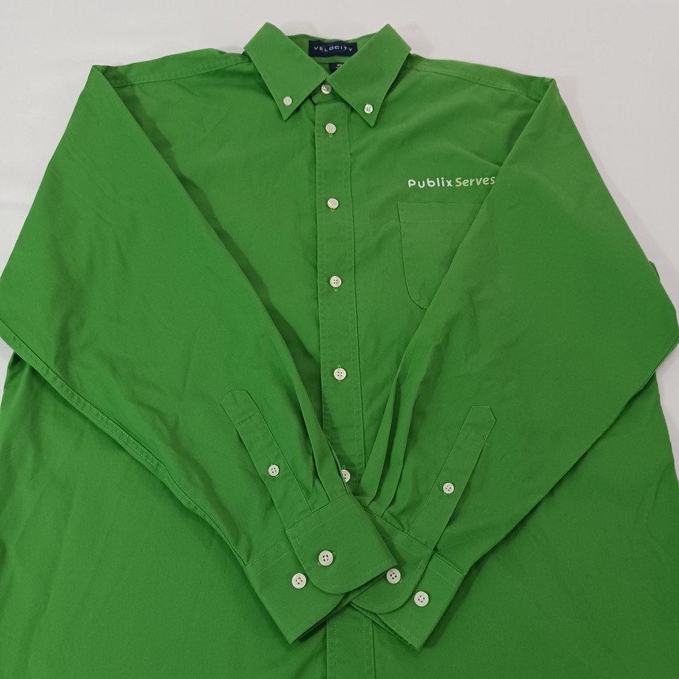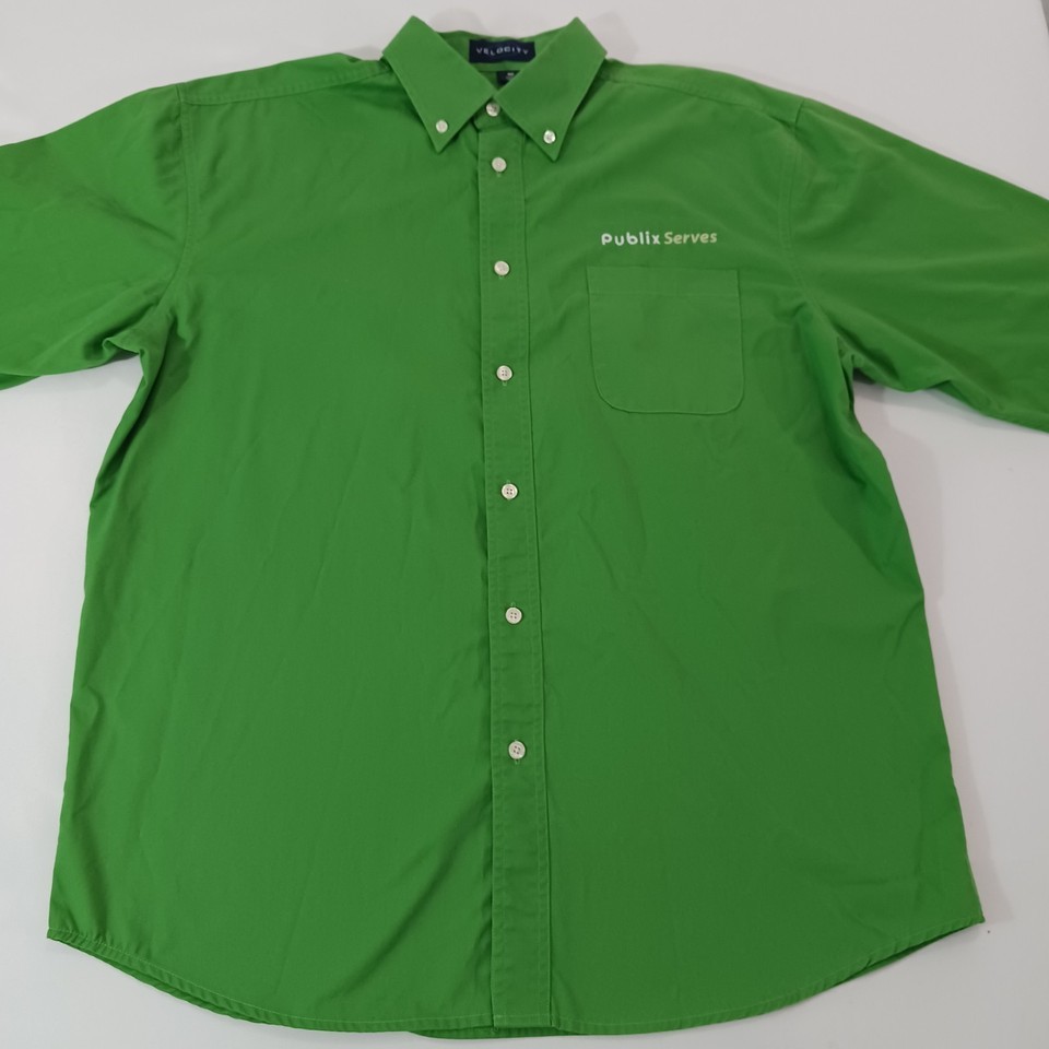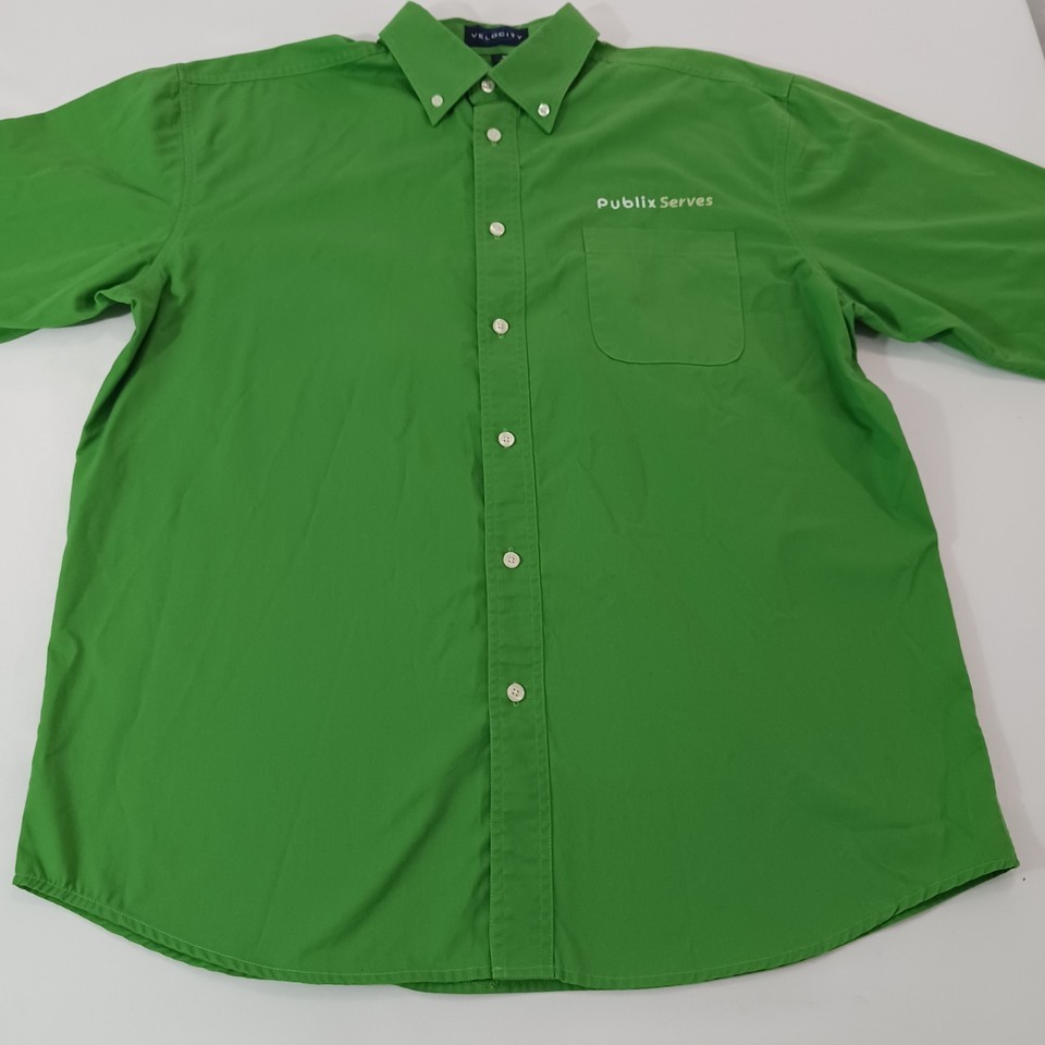 Velocity 1200XA Publix Serve Mens Medium Green Cotton Button-Down Employee Shirt