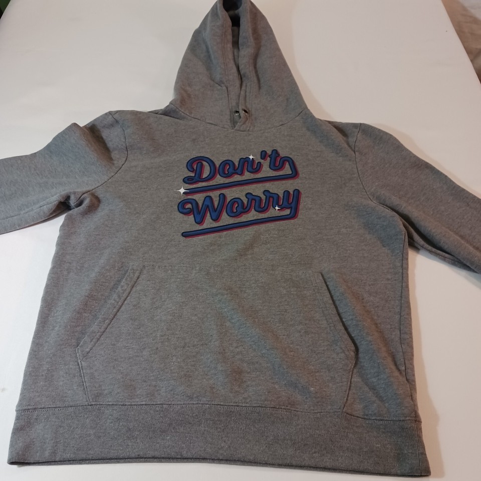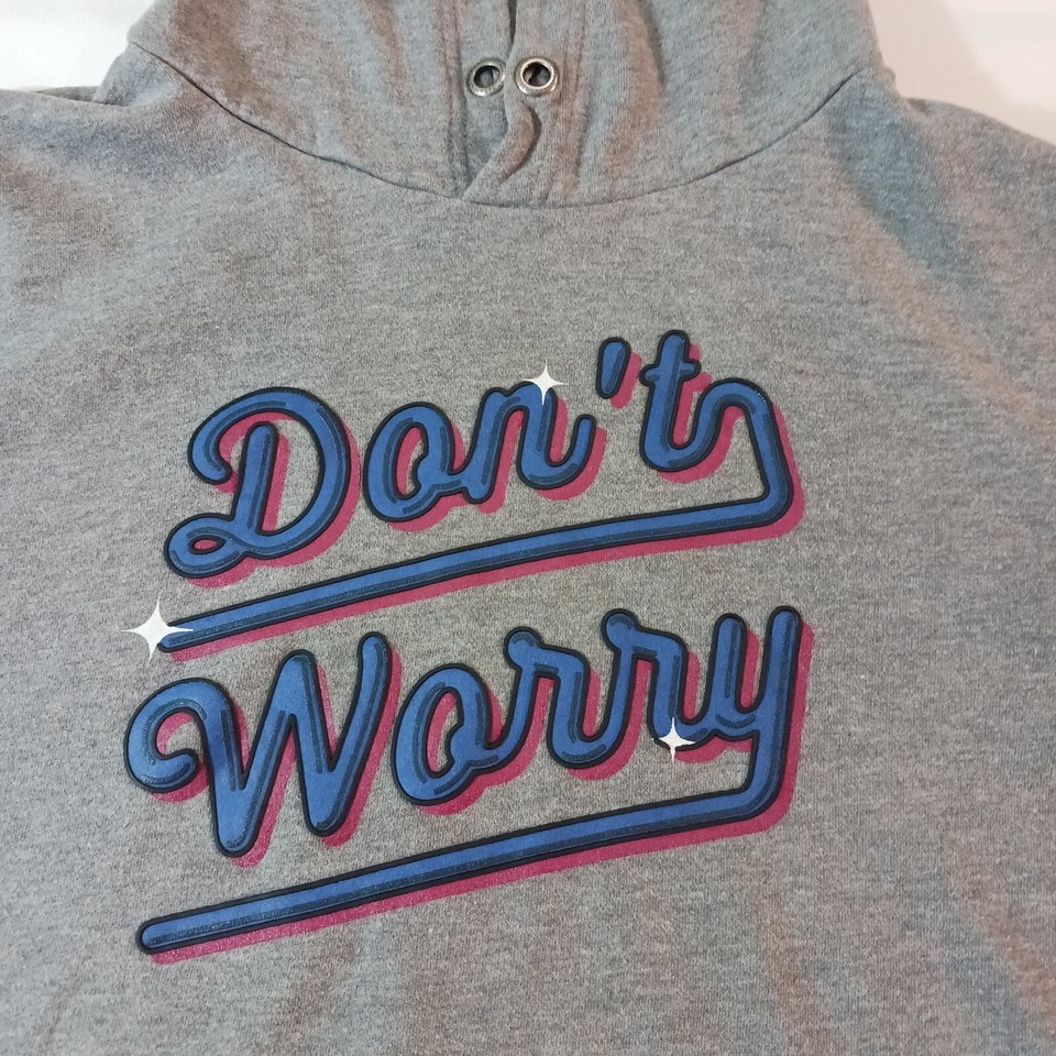 Aeropostale DON"T WORRY Embroidered Men's Gray Cotton Blend Sweatshirt Hoodie L