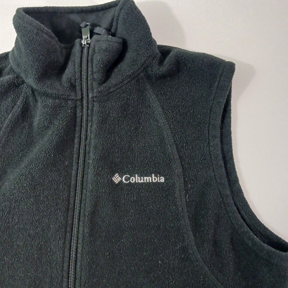 This black fleece vest for women is a size small and is machine washable for easy care. The sleeveless design and basic jacket style make it a versatile addition to any wardrobe. Whether you're running errands or hiking in the mountains, this Columbia WL1017 vest will keep you warm and stylish.