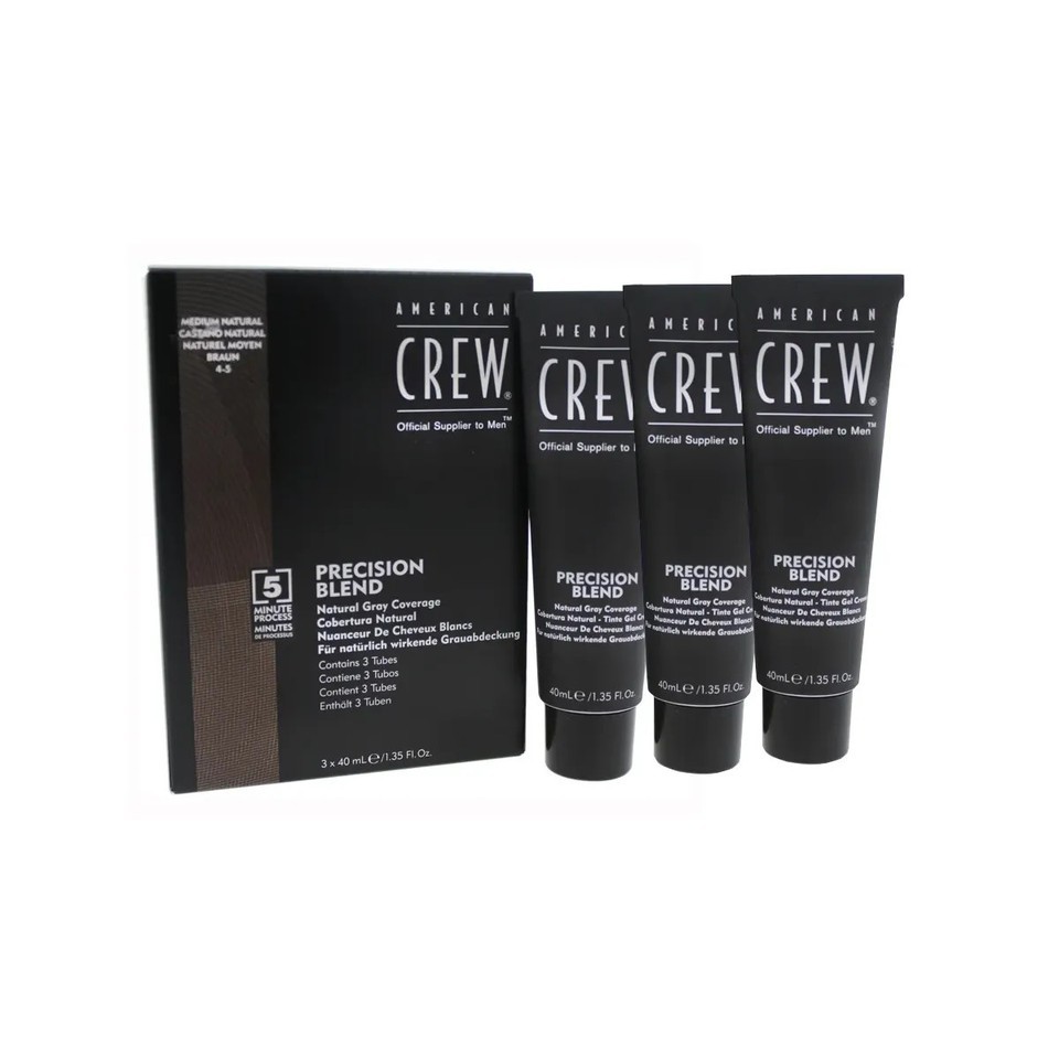 American Crew PRECISION BLEND Natural Gray Coverage (MEDIUM NATURAL) Level 4-5 Creates natural color for men in just five minutes. Contains 3 Tubes of 40ml or 1.35oz.