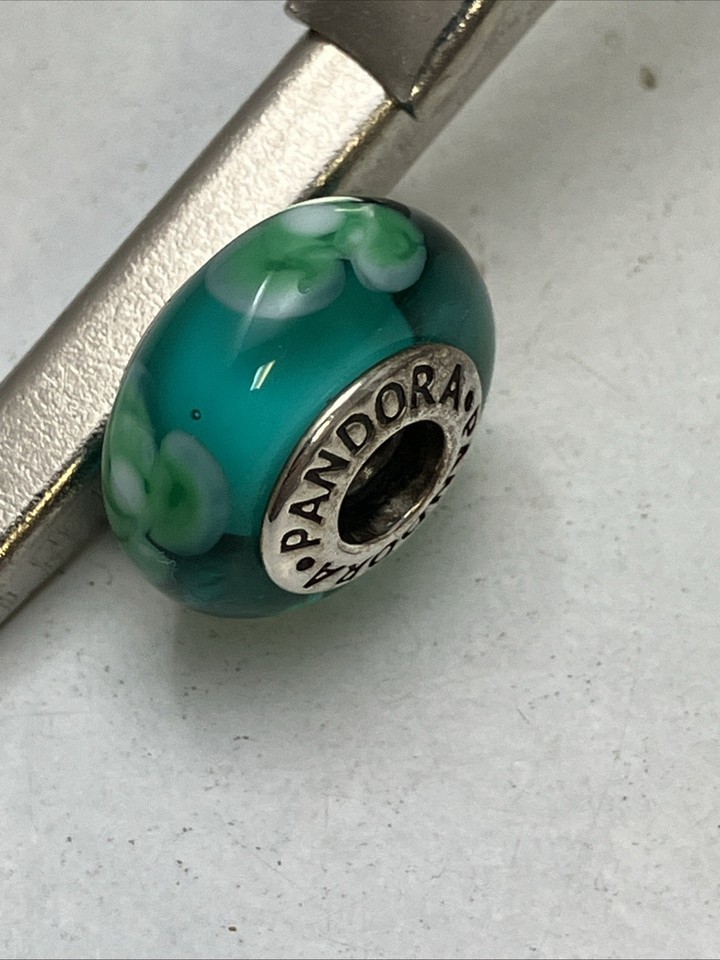 Pandora (Retired) Lime Green Floral Murano Glass & Sterling Bead Charm #790648 added to cart.